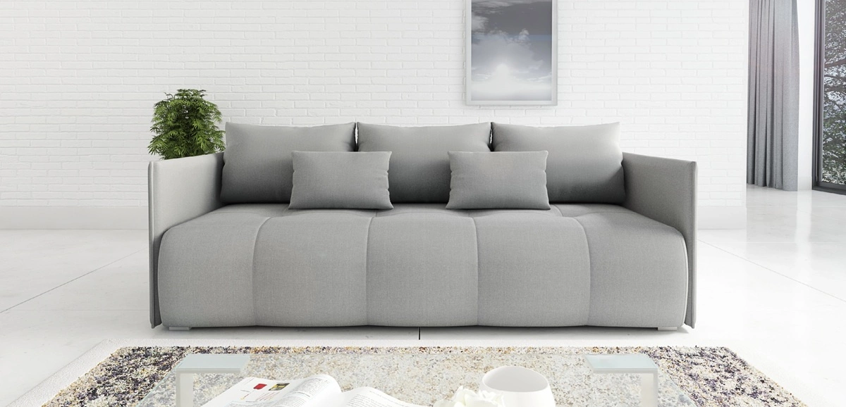 Rozkládací pohovka Selva světle šedá funkční pohovka do obývacího pokoje s úložným prostorem na lůžkoviny z odolné tkané látky
