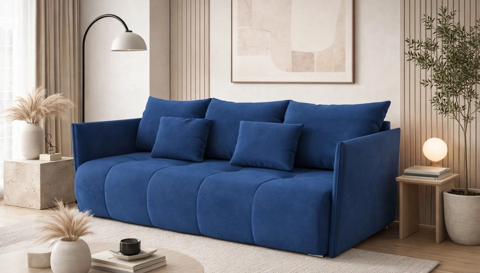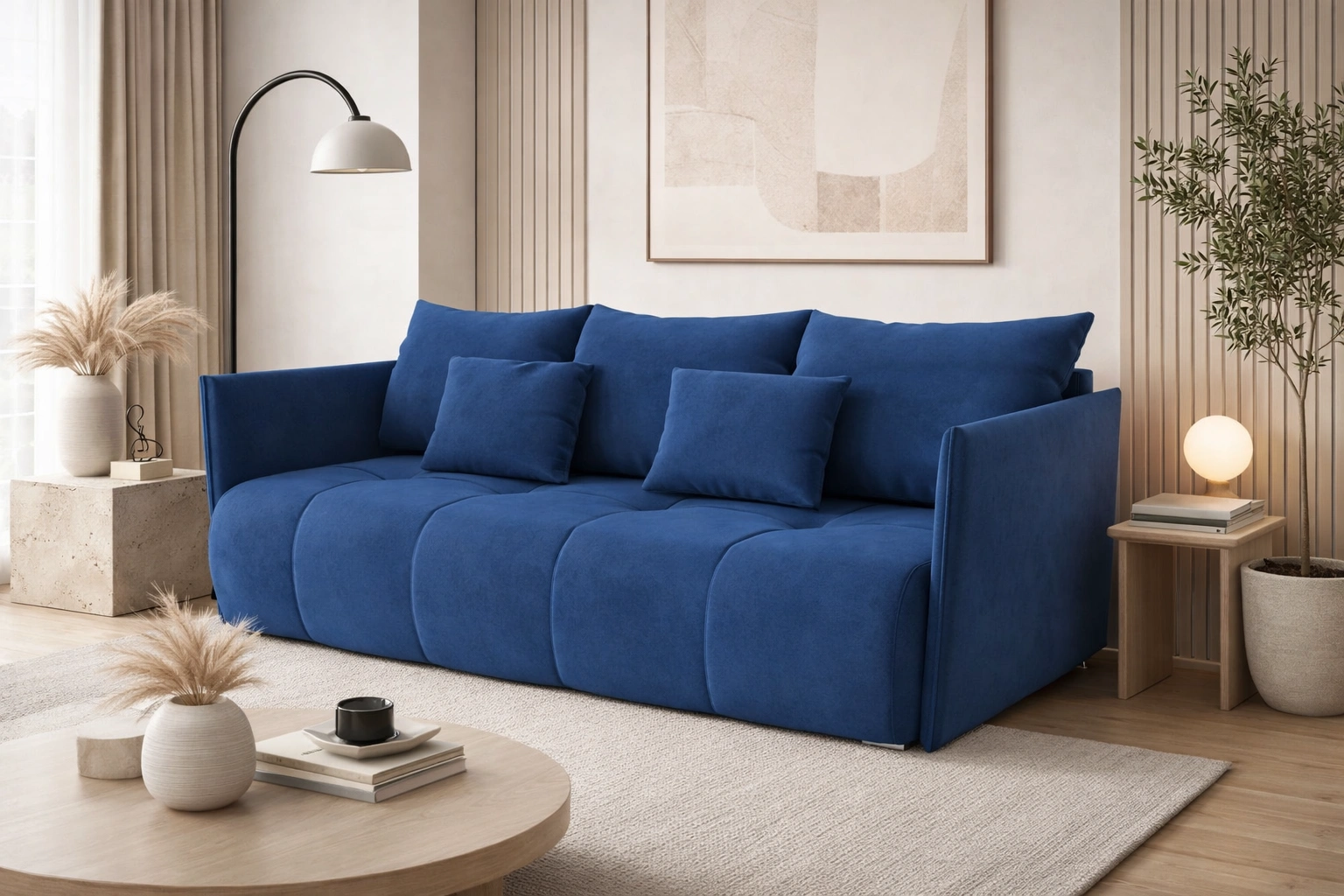Rozkládací pohovka Selva v tmavě modré barvě je atraktivní kus nábytku, který si snadno najde místo v každé místnosti vašeho domova.
