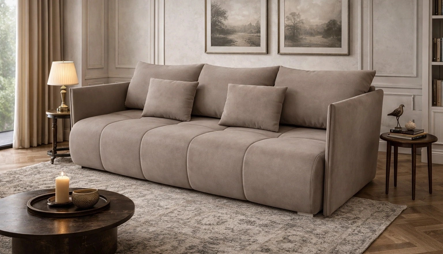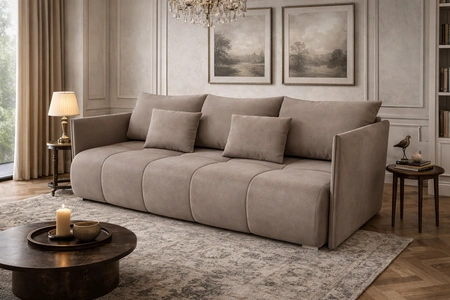 Rozkládací pohovka Selva v tmavě béžové barvě je atraktivním kusem nábytku, který snadno najde uplatnění v každé místnosti vašeho domova.