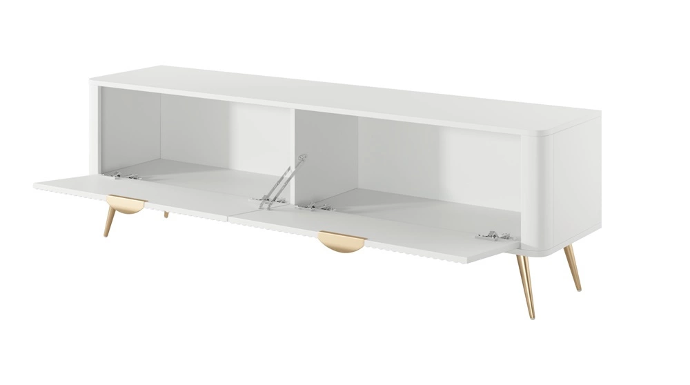 Skříňka RTV Lante 163 cm v bílé barvě je moderní kus nábytku, který překvapí svým tvarem a estetikou.
