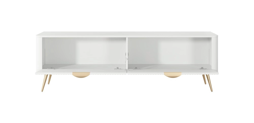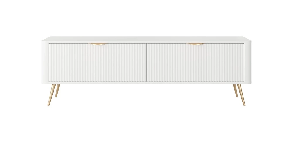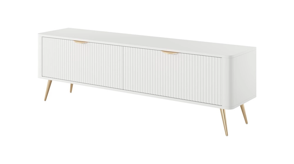 RTV skříňka Lante 163 cm bílá designová TV skříňka v módním stylu zaoblené hrany masivního vkusného rýhovaného čela
