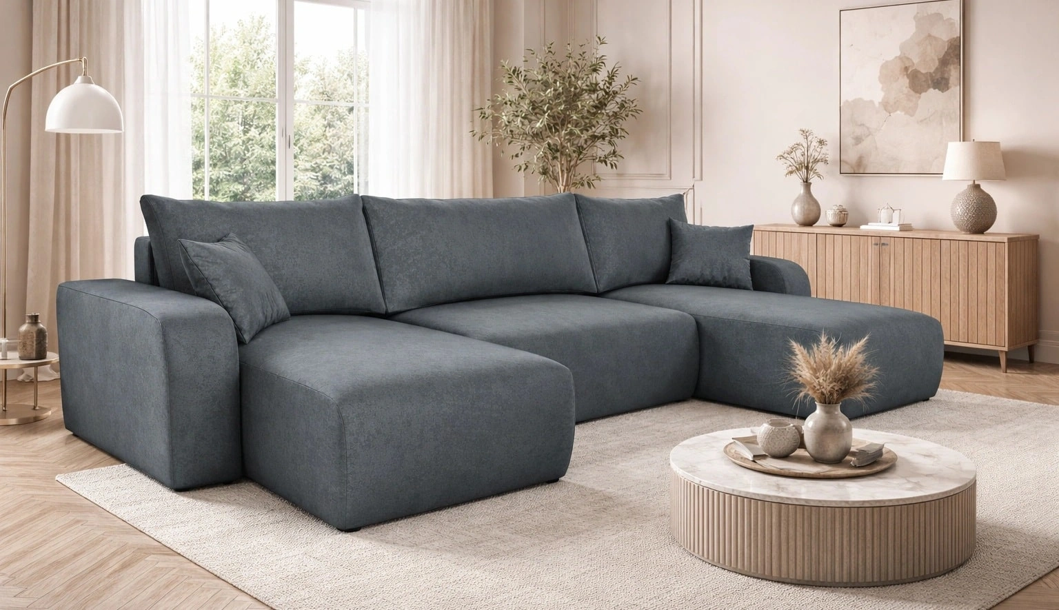 Tkanina Paros se vyznačuje vysokou odolností proti vyblednutí, což je ideální pro velmi slunné interiéry. Pohodlné čalounění s plyšový povrch s jemným chlupem dává nábytku jemný, stínovaný efekt, která se mění s každým dotykem. Tkanina je také snadno se udržuje v čistotě. Další výhodou tkaniny Paros je vysoká odolnost proti roztřepení a oděru. Skládací roh Fiesta U tak bude dlouho vypadat esteticky a elegantně. Rohová sedací souprava s funkcí každodenního spaní je vyrobena z vysoce kvalitních materiálů, které jsou odolné vůči vnějším vlivům, jako je čalounění nábytku a různé druhy nárazů.