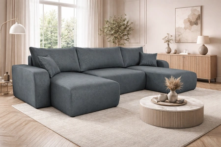 Díky svým rozměrům a široké funkčnosti je rohová pohovka s funkcí spaní ideální jako rohová pohovka do obývacího pokoje nebo jako rozkládací rohová pohovka do pokoje pro hosty. Rohová pohovka s funkcí spaní je také skvělou alternativou k posteli v pokoji pokoj pro mladé. Šířka rohu 325 cm, výška 89 cm a hloubka 153 cm. Spací plocha rohové jednotky je 133x281 cm. Výška sedadla nábytku je 41 cm, a výška opěradla je 45 cm. Vlnité pružiny a polyuretanová pěna T28 je materiál, z něhož je vyrobeno sedadlo rohu. Soft opěrné polštáře zajistí vysokou úroveň pohodlí při každodenním odpočinku, což oceníte vy i vaši hosté, kteří se na tuto jedinečnou rohovou sedačku posadí.