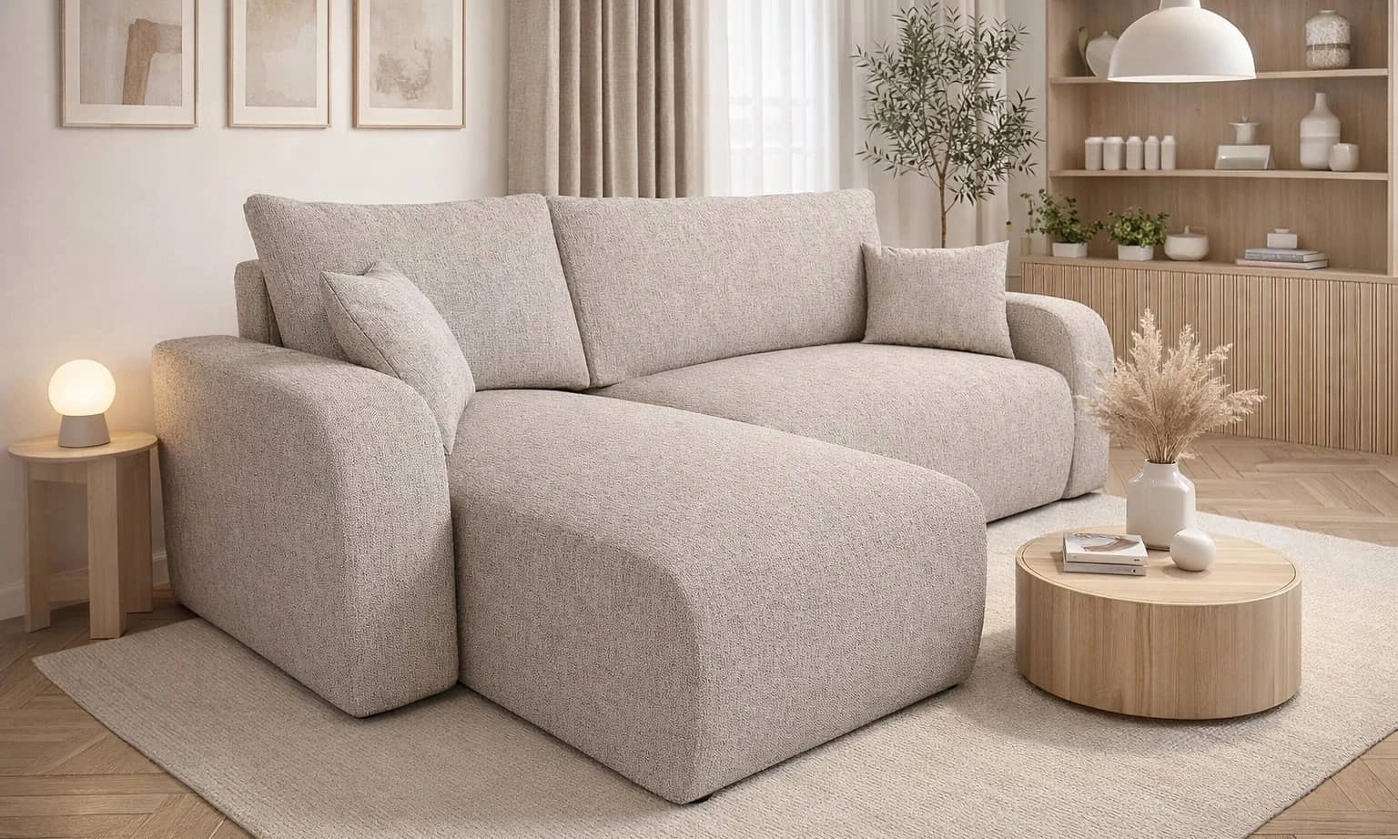 Rohová pohovka Fiesta v béžové barvě je atraktivním kusem nábytku, který snadno najde uplatnění v každé místnosti vašeho domova.