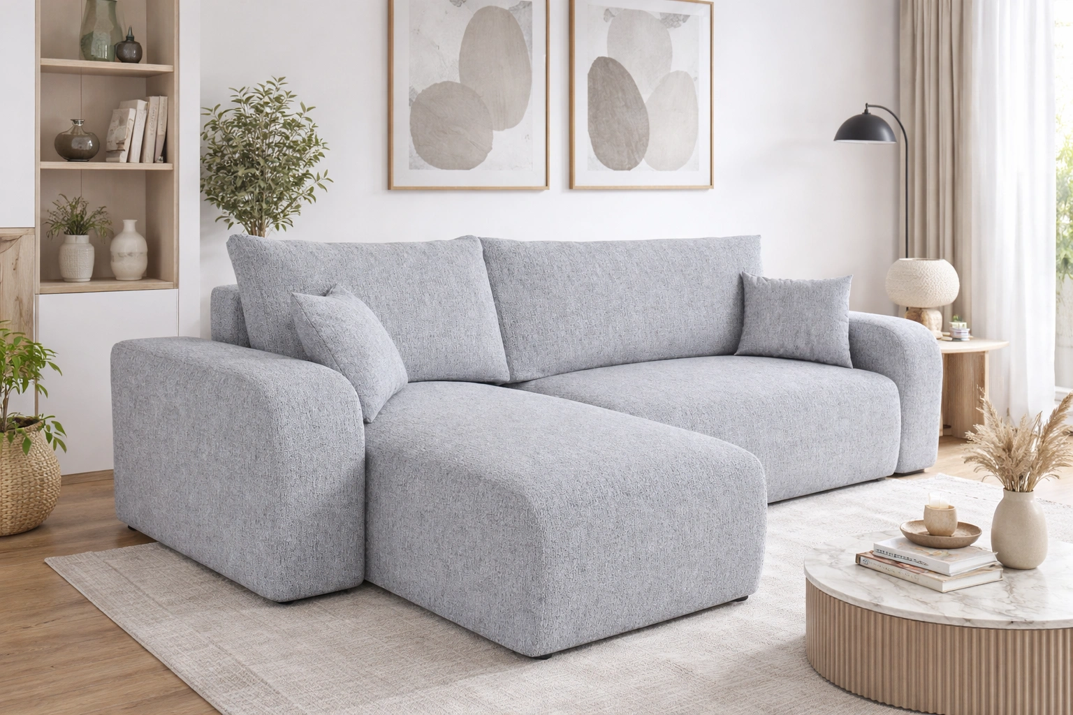 Tkanina Neve se vyznačuje vysokou odolností proti vyblednutí, což je ideální pro velmi slunné interiéry. Pevný a odolný, ale zároveň velmi příjemný na dotek, tkaný materiál je také.. se snadno udržuje v čistotě. Classic pletená textura v kombinaci s melanžovým efektem dodává nábytku jedinečnou hloubku a eleganci. Další výhodou tkaniny Neve je její vysoká odolnost proti oděru. Díky tomu bude skládací roh Fiesty vypadat esteticky a elegantně po dlouhou dobu. Rohová sedací souprava s funkcí každodenního spaní je vyrobena z vysoce kvalitních materiálů, které jsou odolné vůči vnějším vlivům, jako je čalounění nábytku a různé druhy nárazů.