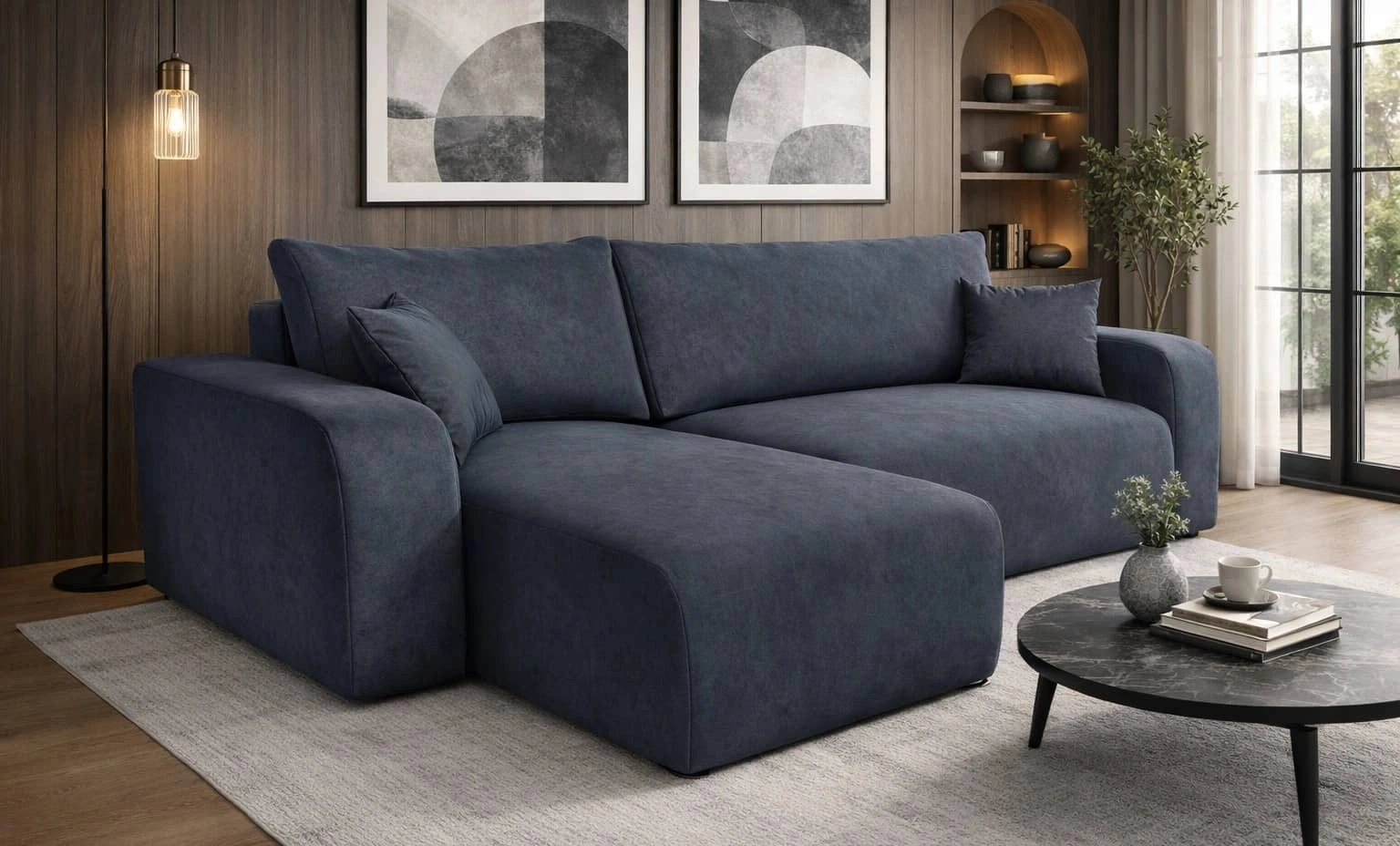 Díky svým rozměrům a široké funkčnosti je rohová pohovka s funkcí spaní ideální jako rohová pohovka do obývacího pokoje nebo jako rozkládací rohová pohovka do pokoje pro hosty. Rohová pohovka s funkcí spaní je také skvělou alternativou k posteli v pokoji pokoj pro mladé. Šířka rohu 251 cm, výška 89 cm a hloubka 153 cm. Spací plocha rohové jednotky je 133x207 cm. Výška sedadla nábytku je 41 cm, a výška opěradla je 45 cm. Vlnité pružiny a polyuretanová pěna T28 je materiál, z něhož je vyrobeno sedadlo rohu. Soft opěrné polštáře zajistí vysokou úroveň pohodlí při každodenním odpočinku, což oceníte vy i vaši hosté, kteří se na tuto jedinečnou rohovou sedačku posadí.