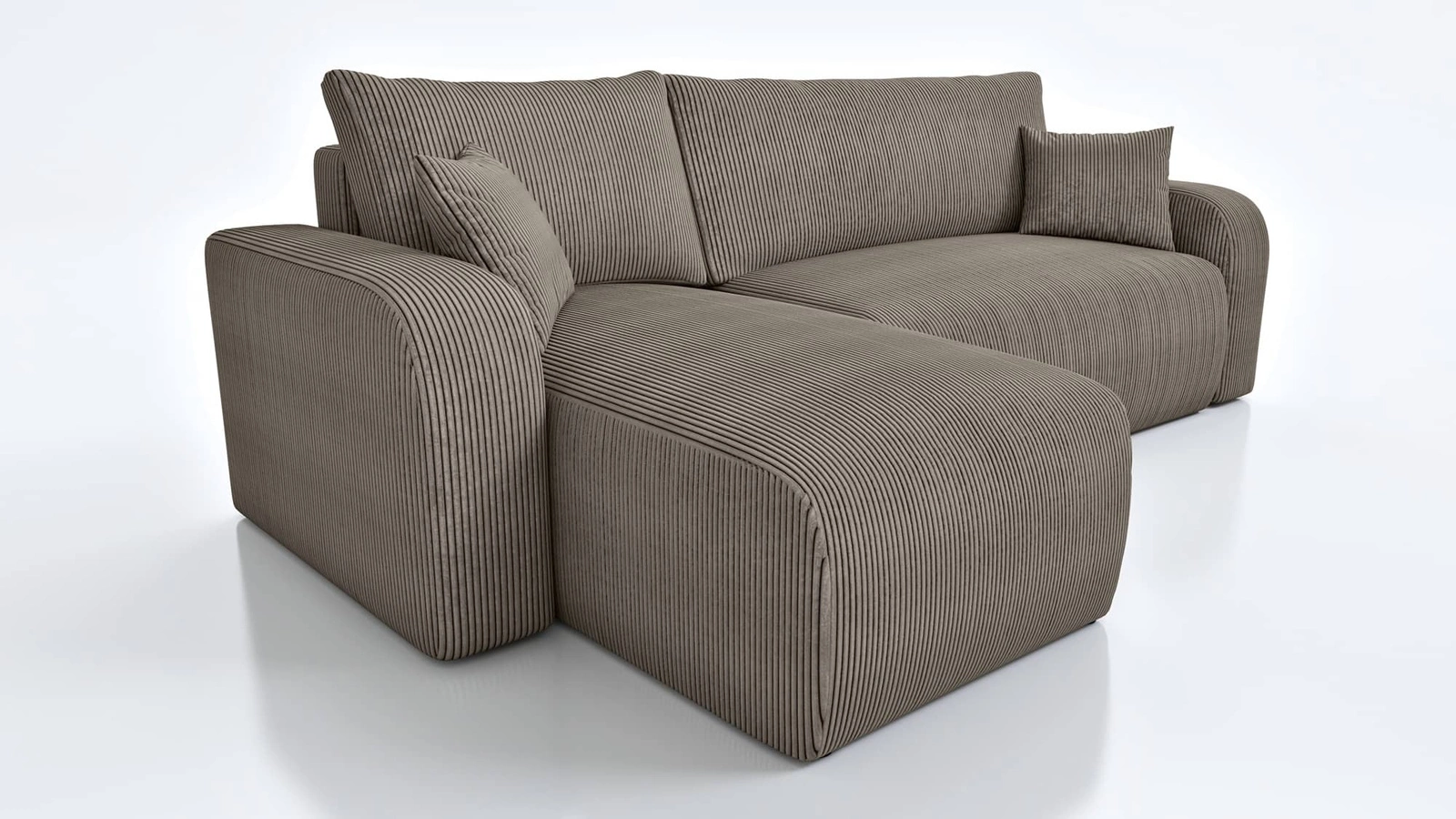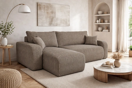 Trojrozměrné manšestrová tkanina s výrazným a silným žebrováním dodává zvláštní charakter a jedinečnou krásu. Tkanina je velmi měkká a přesto pevná a robustní. Čalounická tkanina Poso je odolná proti oděru, a snadno se udržuje v čistotě. Díky tomu bude skládací roh Fiesty vypadat esteticky a elegantně po dlouhou dobu. Rohová sedací souprava s funkcí každodenního spaní je vyrobena z vysoce kvalitních materiálů, které jsou odolné vůči vnějším vlivům, jako je čalounění nábytku a různé druhy nárazů.