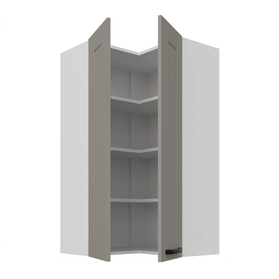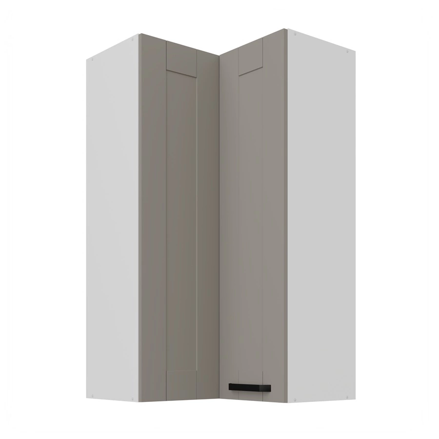 Rohová kuchyňská nástěnná skříňka Ponza v šedobéžové / bílé barvě patří do kategorie modulárního kuchyňského nábytku, ze kterého lze vytvořit libovolnou sestavu.