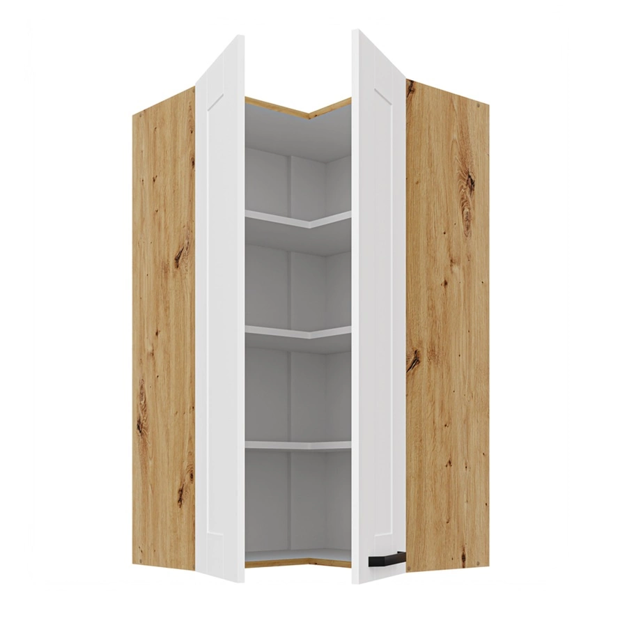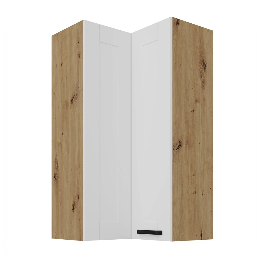 Rohová závěsná kuchyňská skříňka Luis v barvě bílá / dub artisan patří do kategorie modulárního kuchyňského nábytku, ze kterého lze vytvořit libovolnou kombinaci.