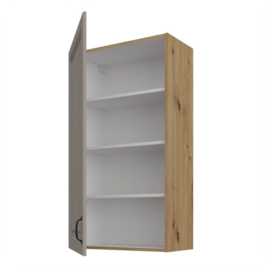 Závěsná kuchyňská skříňka Delos v barvě šedá béžová / dub artisan patří do kategorie modulového kuchyňského nábytku, ze kterého vytvoříte libovolné sestavy