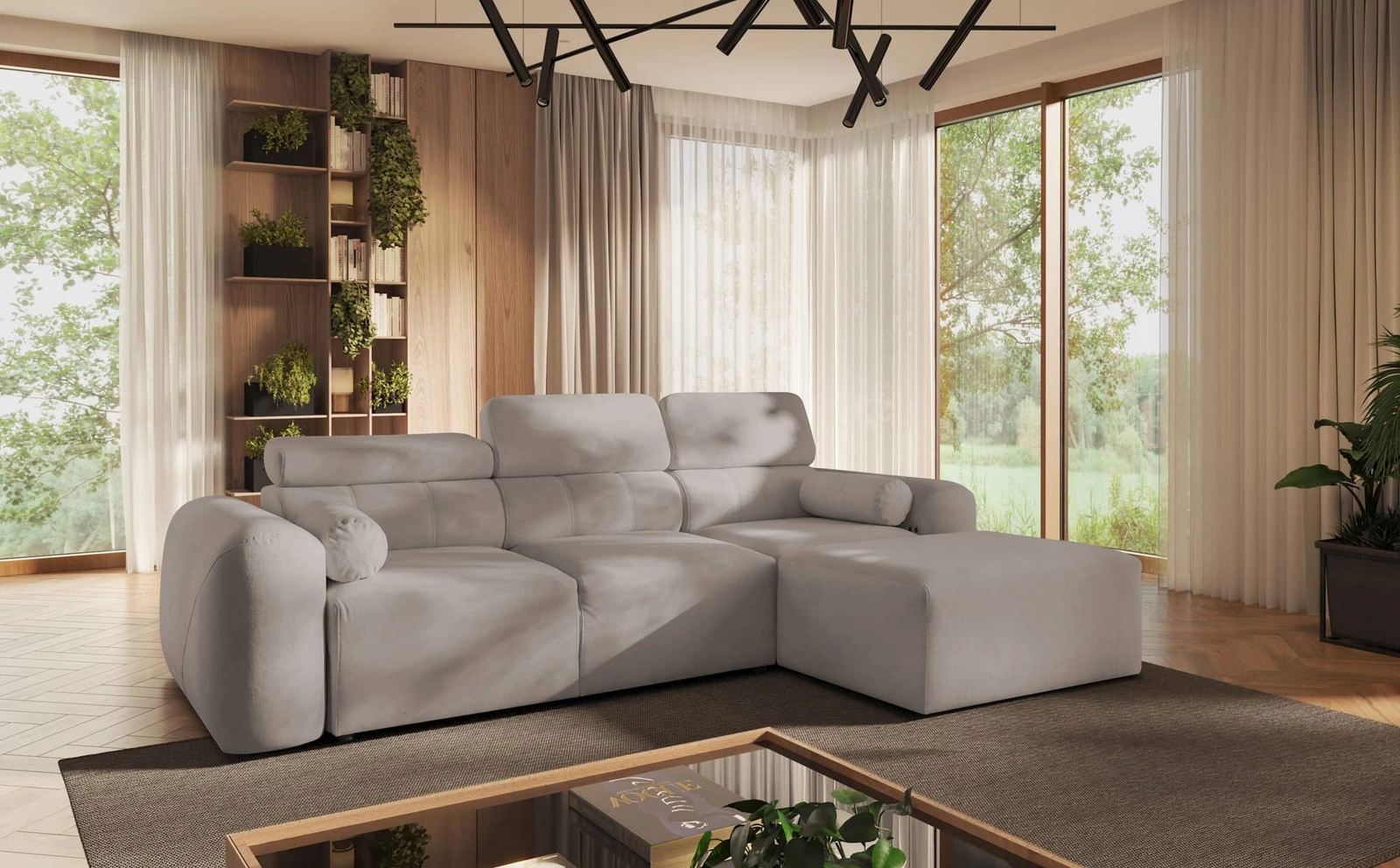 Cantare rohová pohovka s funkcí spaní šedý jasan pravá ruka funkční a pohodlná rohová pohovka s moderním designem plyšová látka