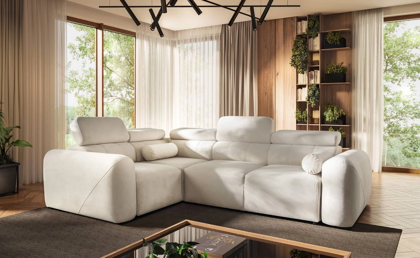 Rohová pohovka Cantare II v barvě slonové kosti je vysoce funkční kus nábytku se stylovou povrchovou úpravou.