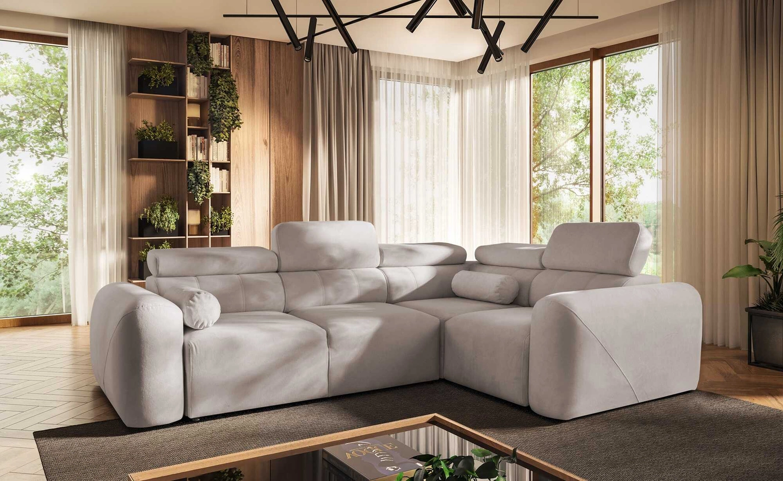 Rohová pohovka s funkcí spaní Cantare II slonovinová kost pravá pohodlná rohová pohovka do obývacího pokoje se stylovým charakterem měkká látka