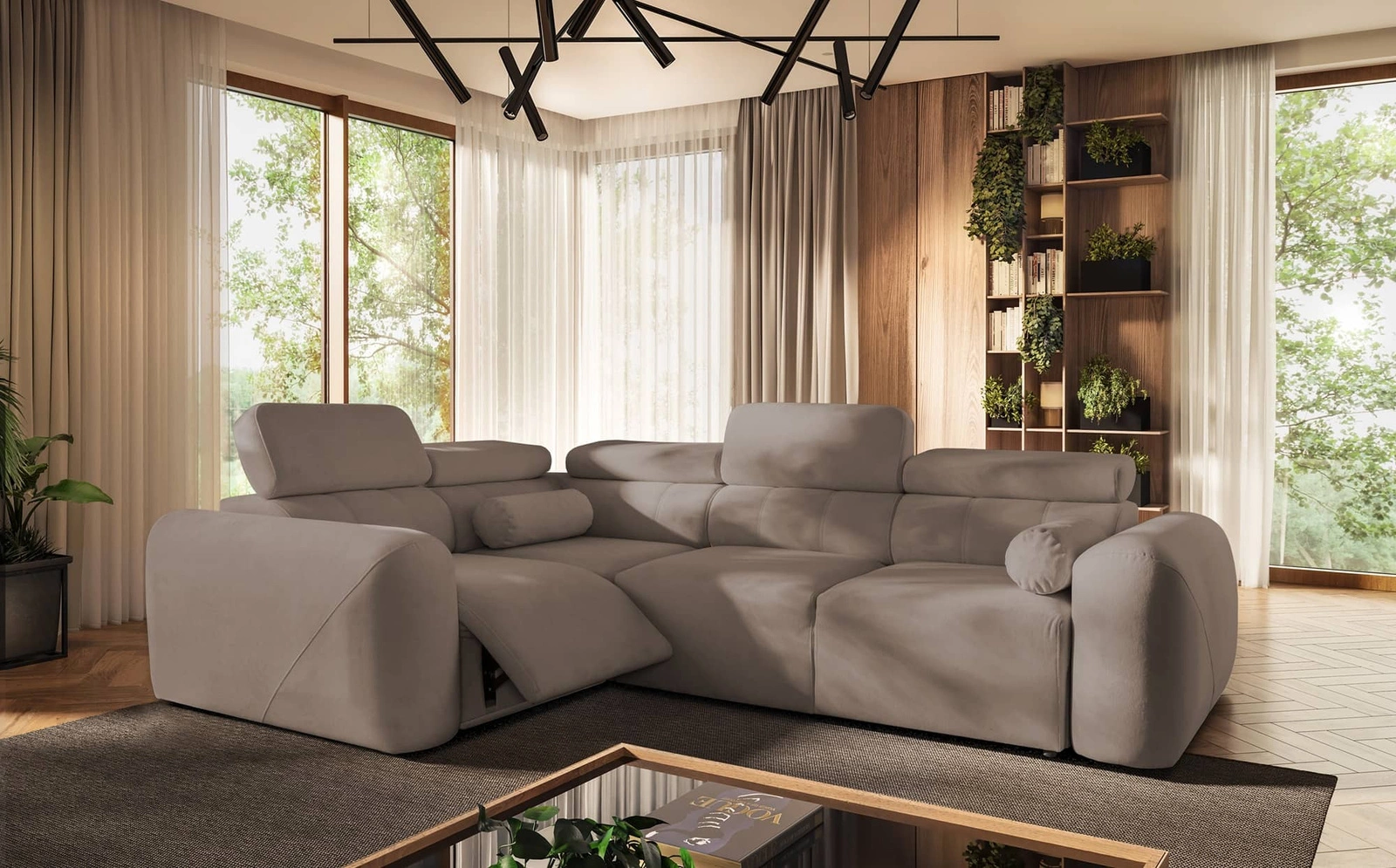 Rohová pohovka Cantare II Lux v tmavě béžové barvě je mimořádně funkční kus nábytku se stylovou povrchovou úpravou.