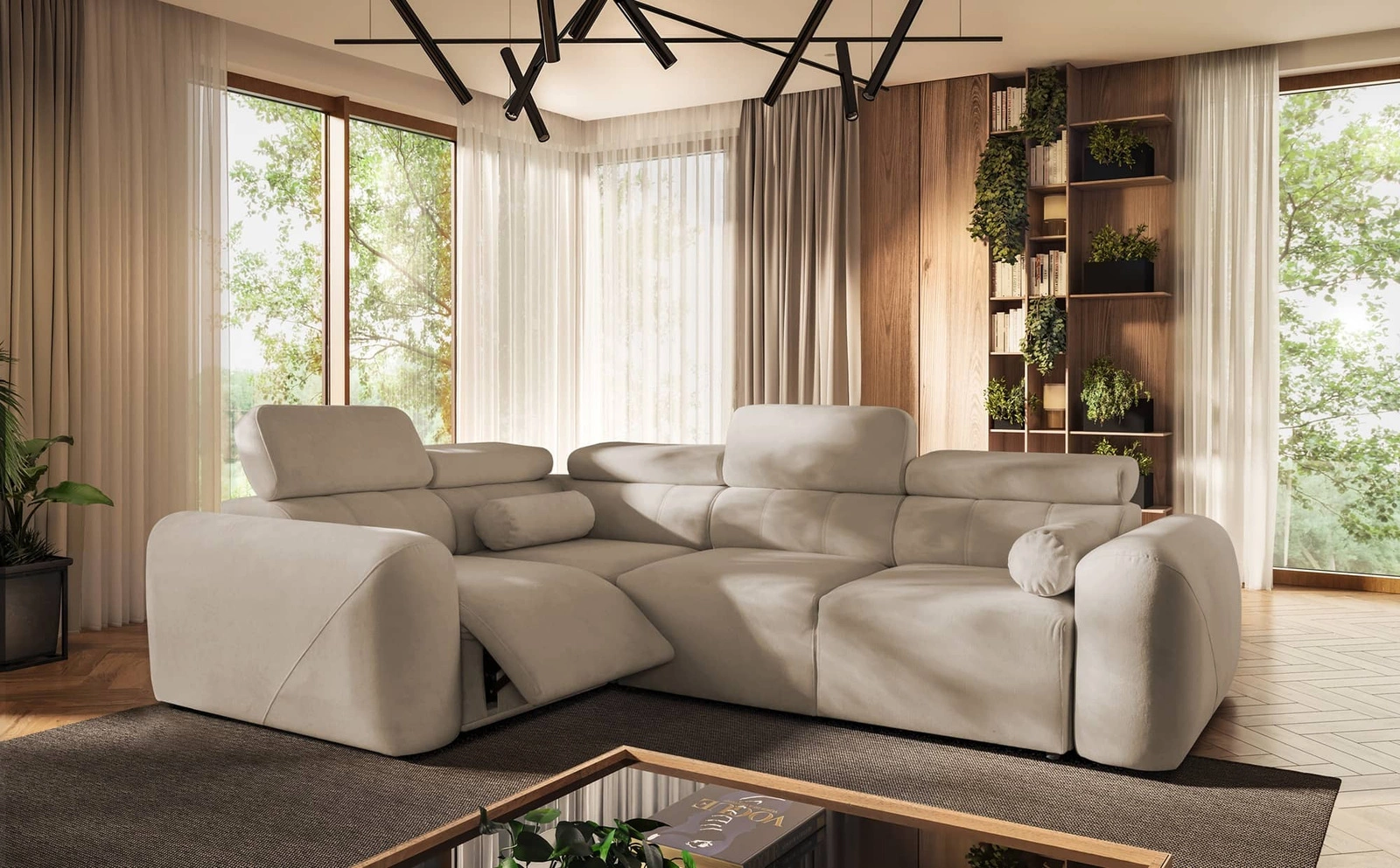 Rohová pohovka Cantare II Lux v béžové barvě je mimořádně funkční kus nábytku se stylovou povrchovou úpravou.