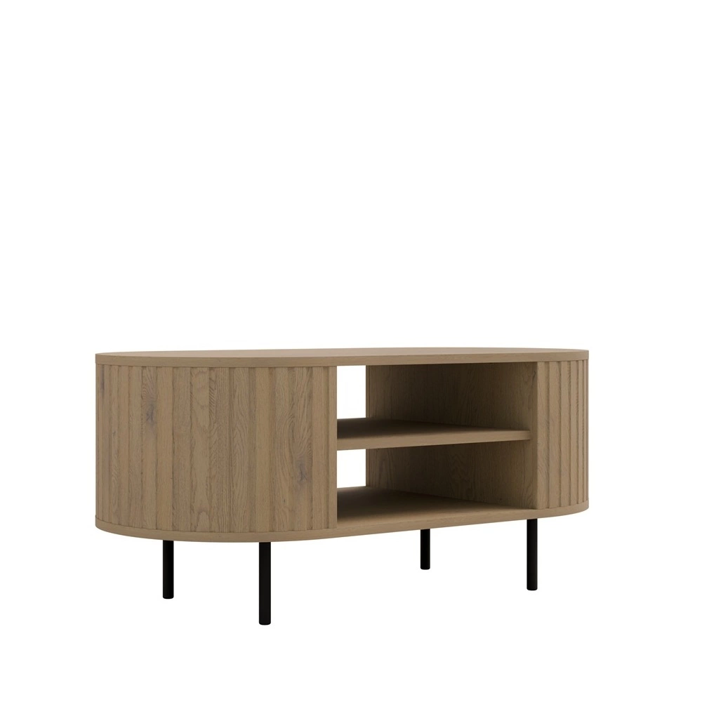 Sestava nábytku do obývacího pokoje Ovalio z dubu cremona je moderní sestava nábytku, která překvapí svým tvarem a estetikou.