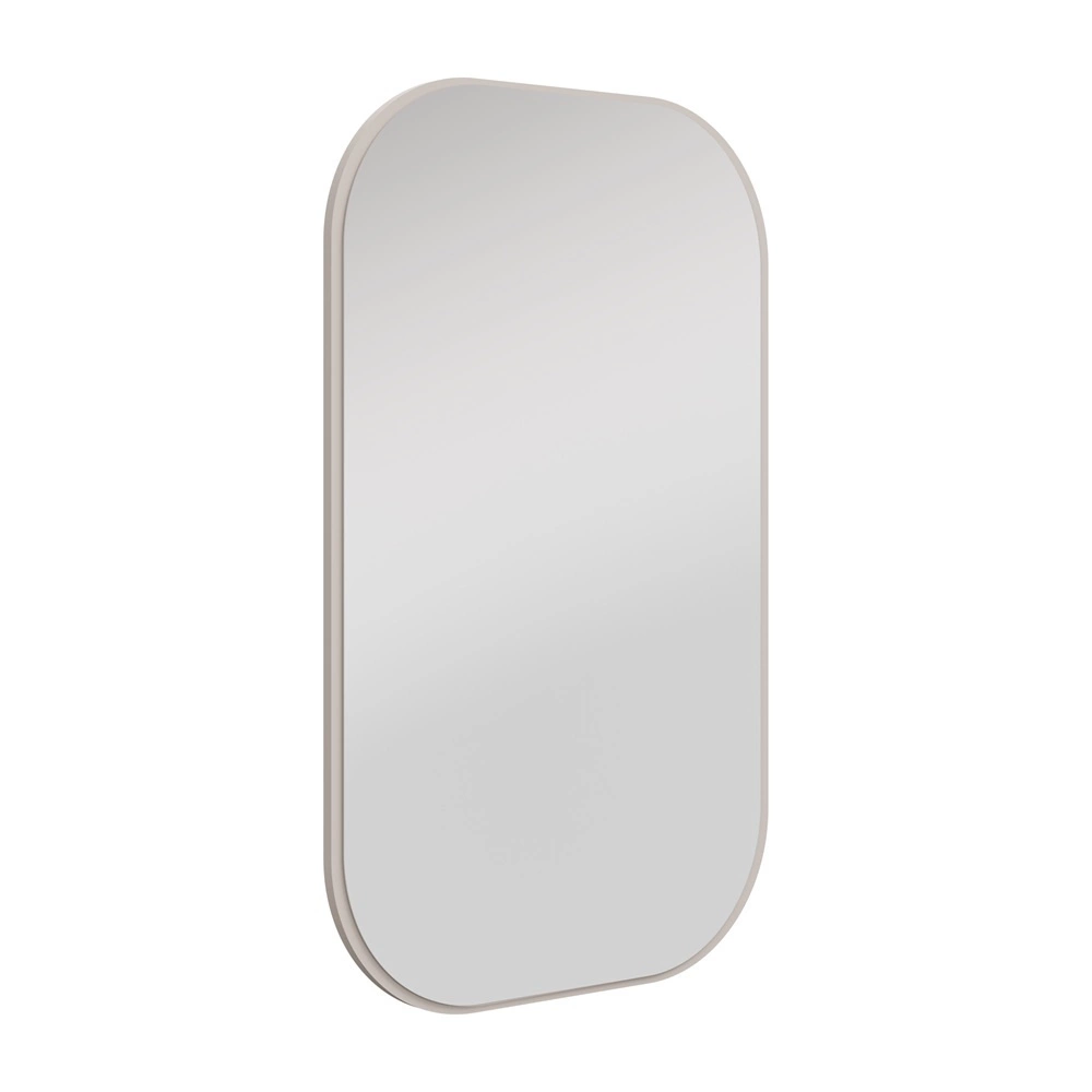 Závěsné zrcadlo Ovalio 68 cm béžové funkční doplněk k toaletnímu stolku zrcadlo do předsíně a šatny s neobvyklým tvarem