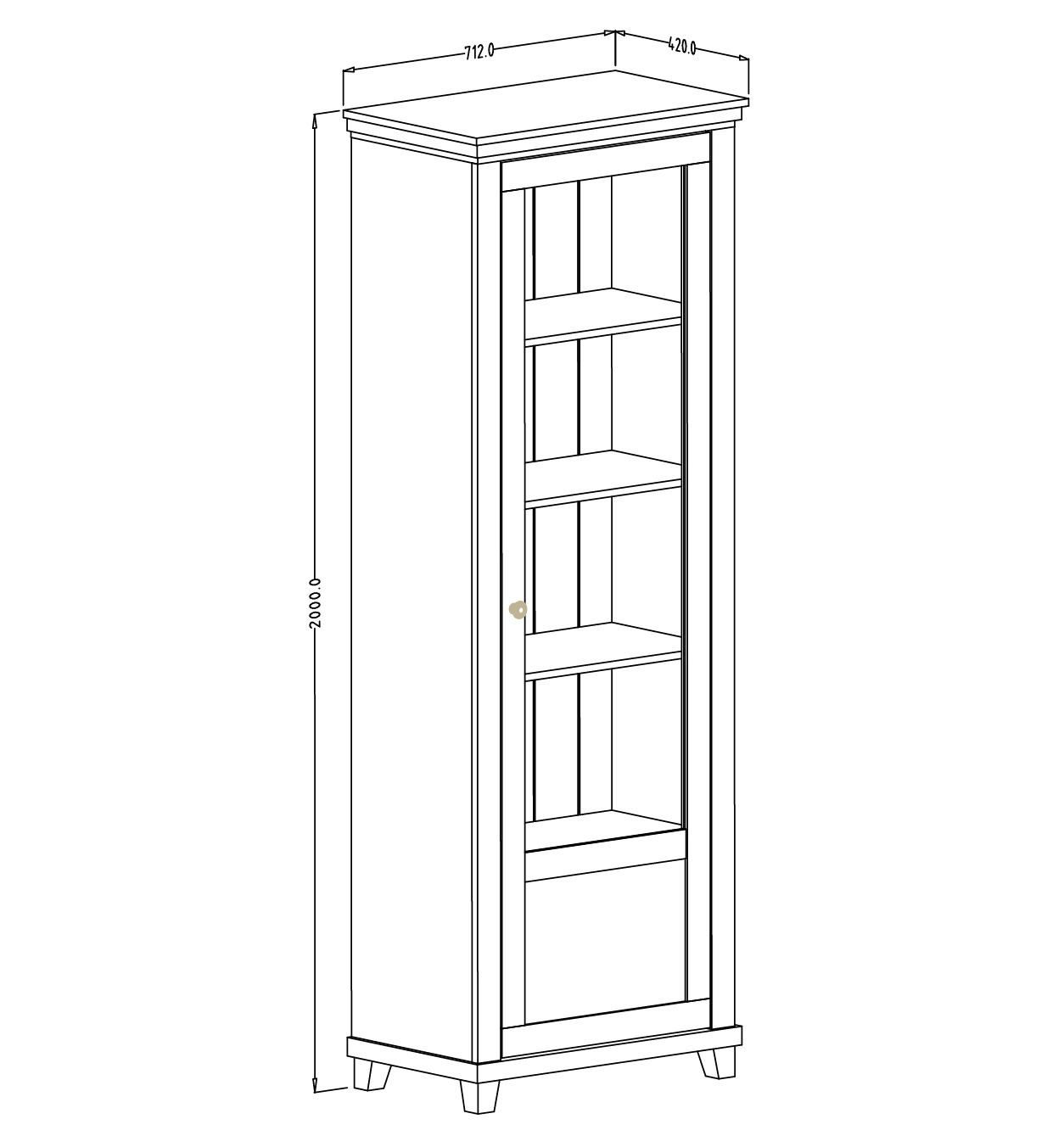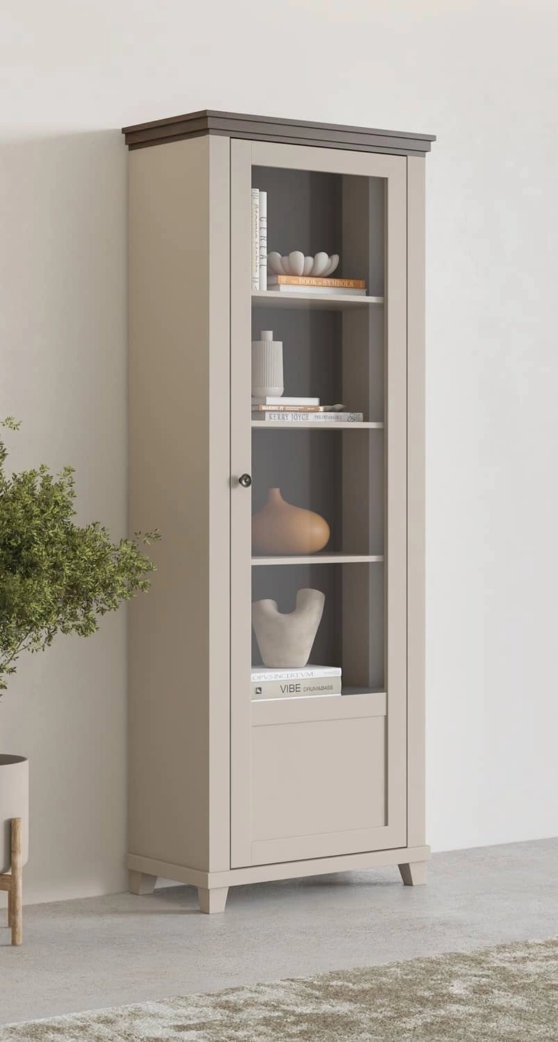 Webové stránky je tvořena 1 dveře. Standardní výbava zahrnuje závěsy se systémem měkkého zavírání. Použitý systém zvyšuje komfort a bezpečnost používání nábytku. Knihovna zaručuje pohodlné a bezproblémové používání a trvanlivost celého nábytku po mnoho let používání. Módní béžová barva naleznou dokonalý soulad v sofistikovaných aranžmáh, takže skleněné skříně z kolekce Evora se skvěle hodí jako skříně do obývacího pokoje, jídelny nebo knihovny.