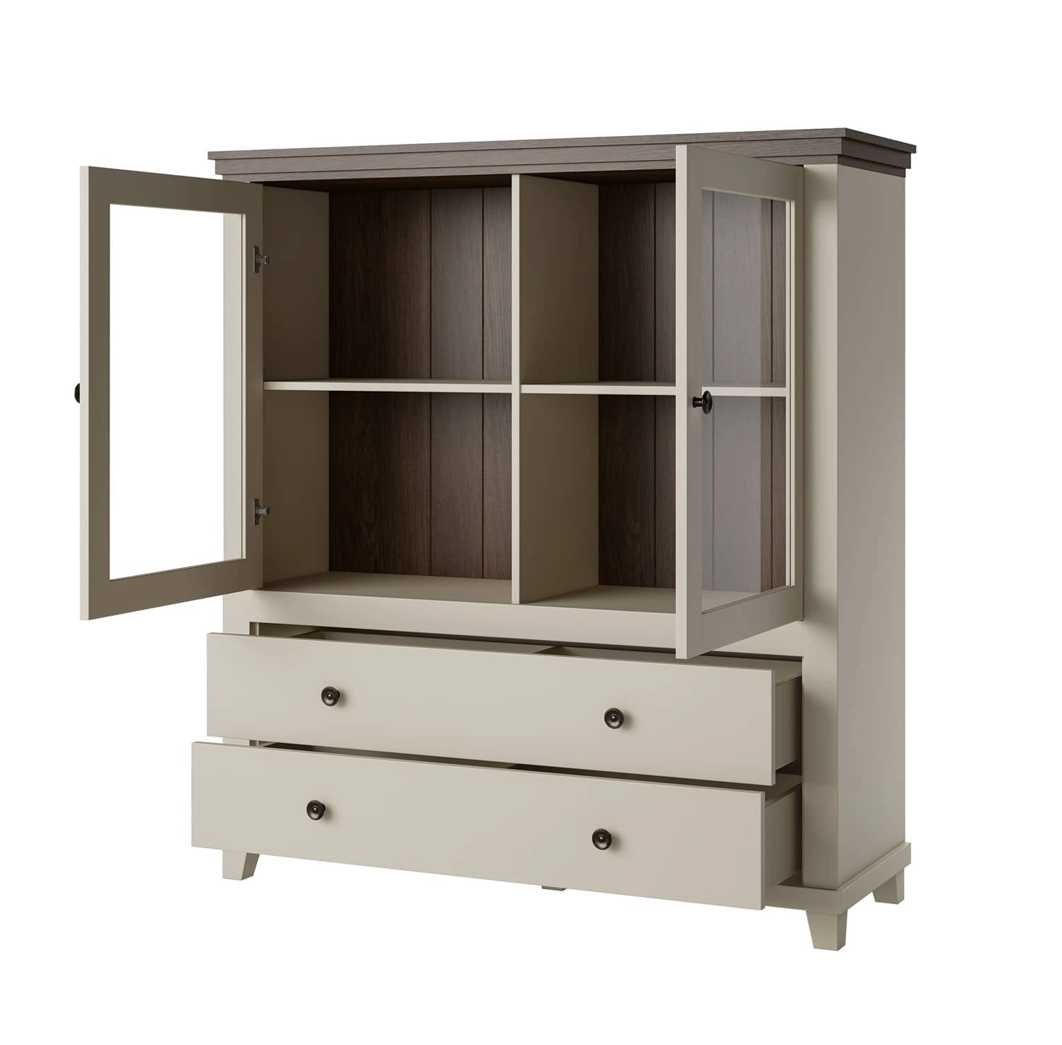 Komoda je tvořena 2 dveře a 2 zásuvky. Standardní výbava zahrnuje závěsy a výsuvy se systémem tichého dovírání. Použitý systém zvyšuje komfort a bezpečnost používání nábytku. Vysoká komoda zaručuje pohodlné a bezproblémové používání a trvanlivost celého nábytku po mnoho let používání. Módní béžová barva naleznou dokonalý soulad v sofistikovaných aranžmáh, díky čemuž vysoká komoda Evora je ideální jako komoda do obývacího pokoje nebo jako komoda do obývacího pokoje. Komodu lze s úspěchem použít také jako kancelářskou komodu nebo komodu do ložnice.