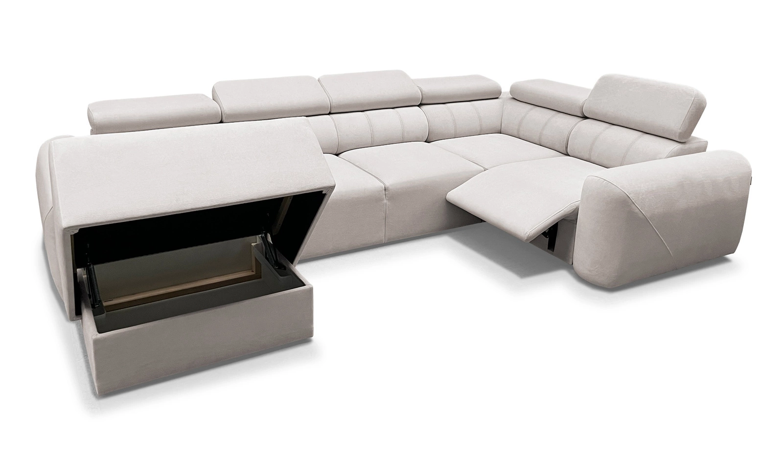 Mezi doplňky tohoto nábytku, které ocení všichni uživatelé, patří elektricky zvedaná opěrka nohou, nastavitelné opěrky hlavy, funkce spaní a zásobník na lůžkoviny.