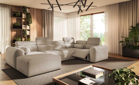 Rohová pohovka s funkcí spaní Cantare IV Lux béžová levá pečlivě zpracovaná rohová sedačka do obývacího pokoje se zvedací opěrkou nohou