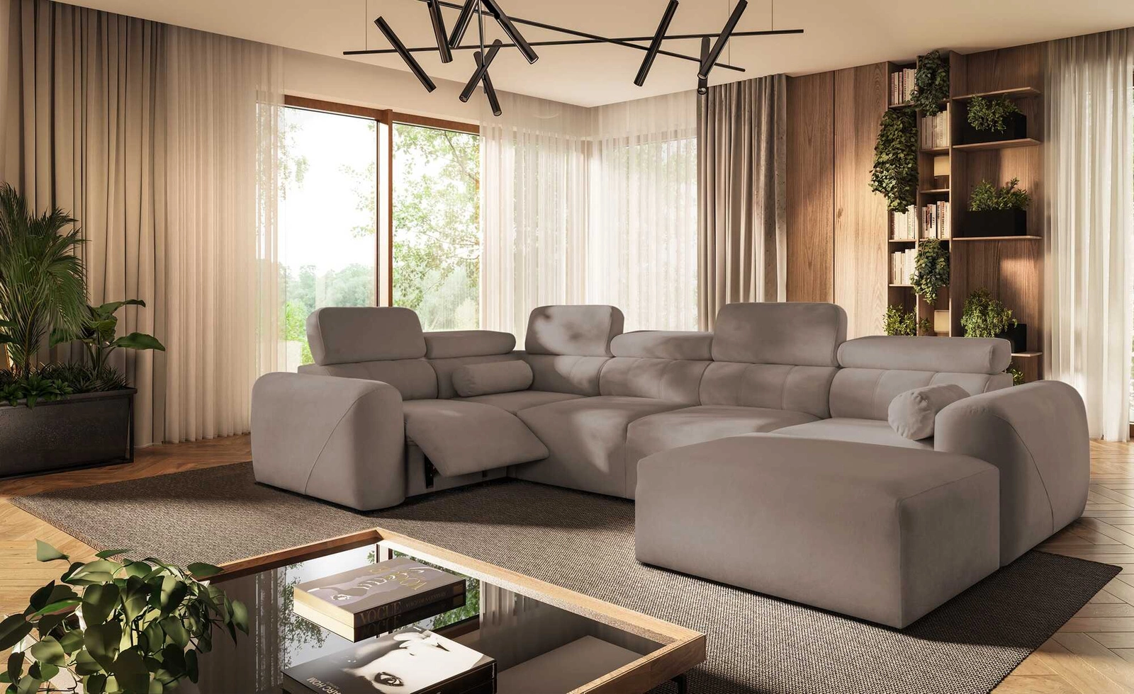 Rohová jednotka Cantare IV Lux v tmavě béžové barvě je mimořádně funkční kus nábytku se stylovou povrchovou úpravou.
