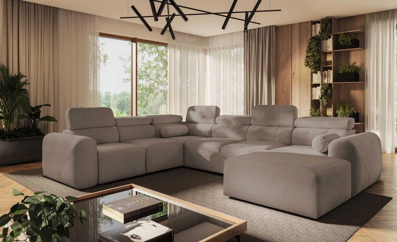 Rohová pohovka Cantare VIII v tmavě béžové barvě je mimořádně funkční kus nábytku se stylovou povrchovou úpravou.