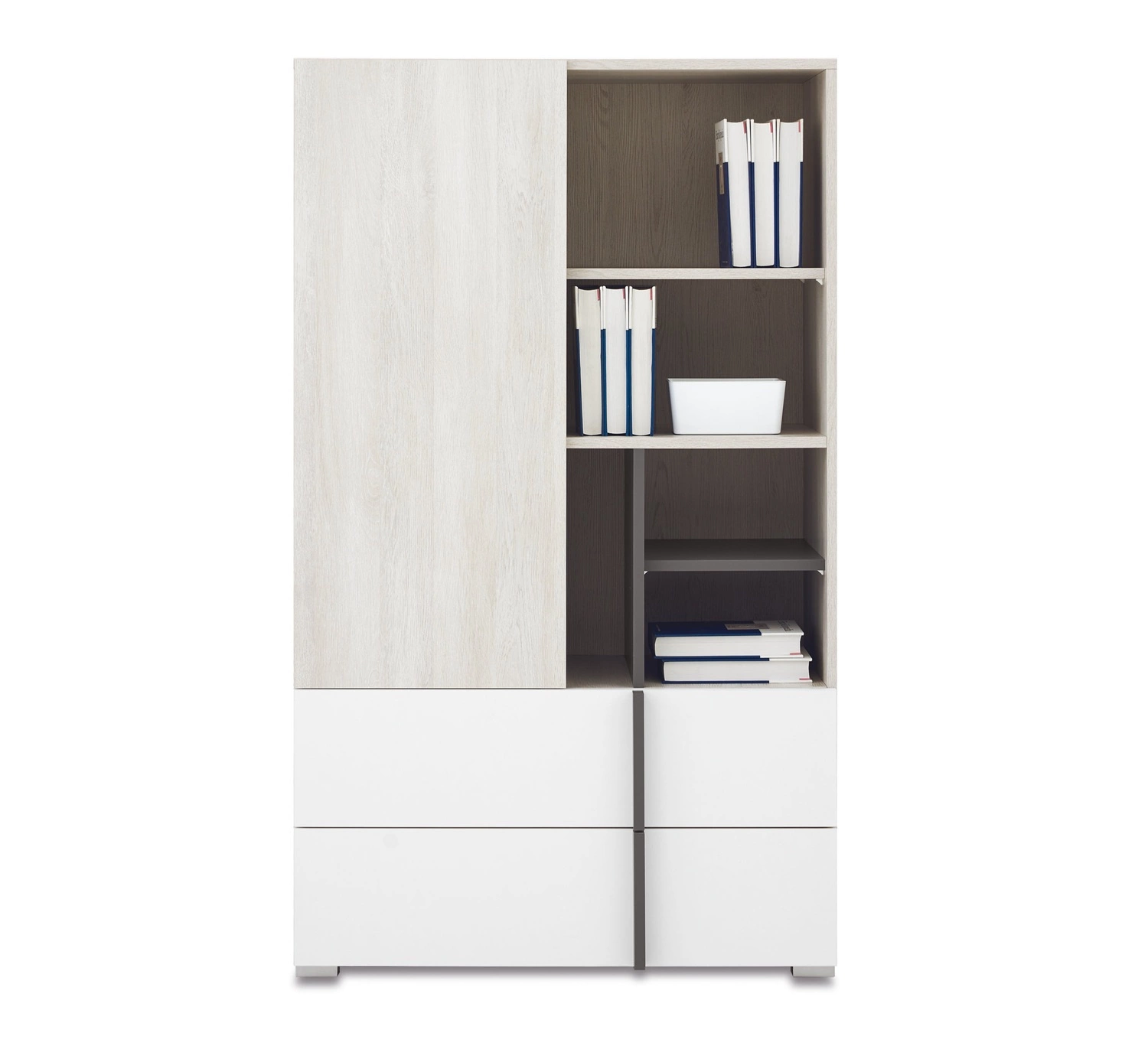 Nízký stojan je vyroben z 1 dveře, 2 zásuvky a otevřené police. Stojan zaručuje pohodlný i bezproblémové použití a životnost celého nábytku po mnoho let používání. Tlumené, světlé barvy dobře se kombinuje s ostatními barvami, takže knihovny Remona jsou ideální jako knihovny do obývacího pokoje dětské. Knihovnu lze s úspěchem použít i jako kancelářskou knihovnu.