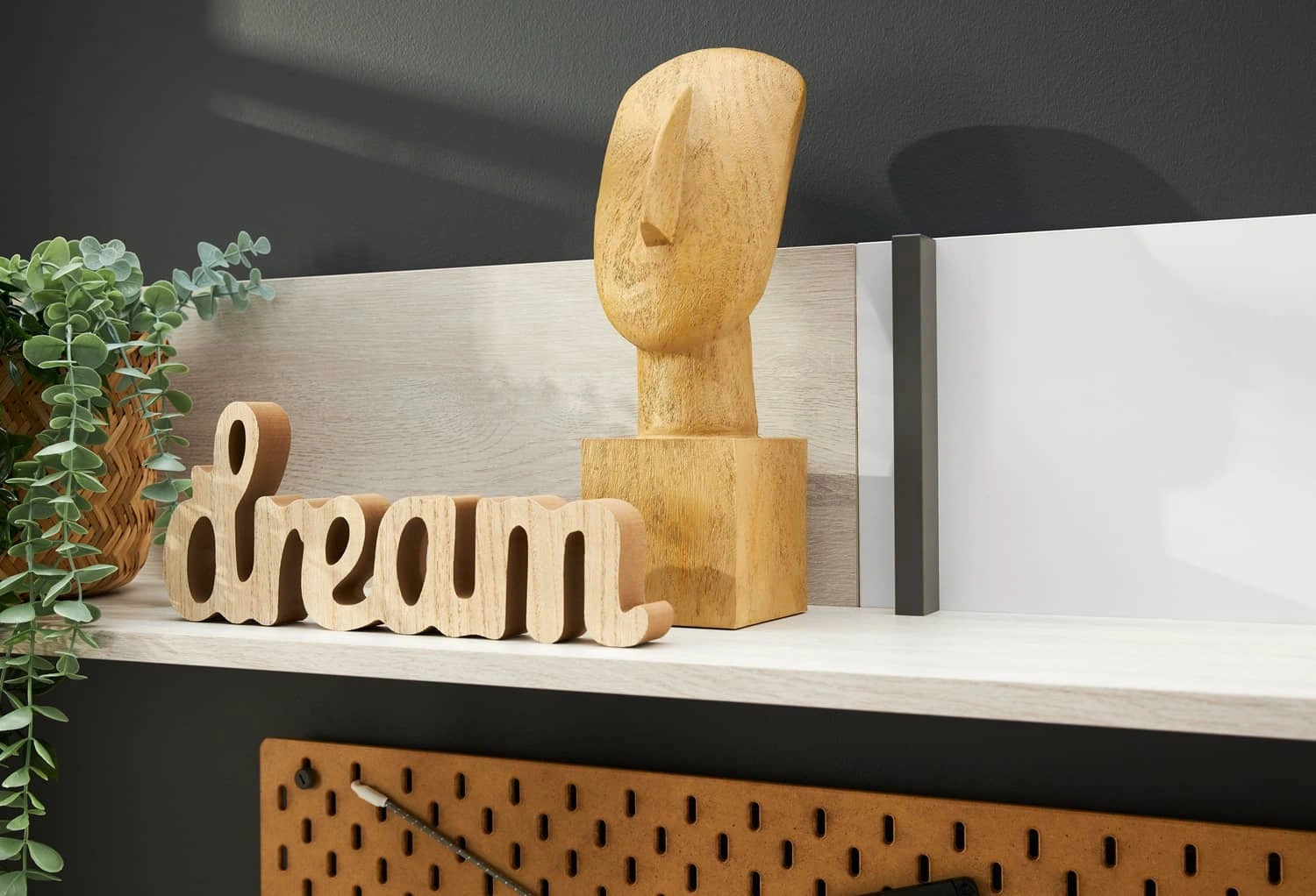 Regál Remona v provedení dub wilton bílý / bílá / antracit je receptem na moderní a funkční interiér v pokoji teenagera nebo v kanceláři.