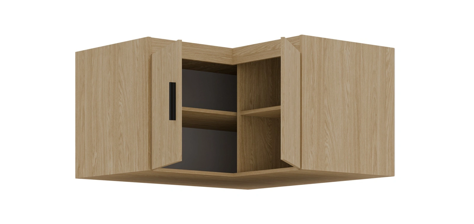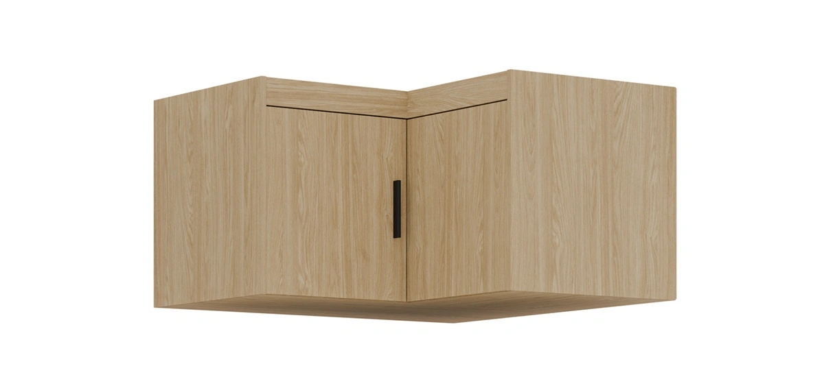 Rohový nástavec na skříň má výklopná dvířka s matným povrchem matný. Nábytek je vyroben z 2 dvířka. Horní část je vyrobena z vysoce kvalitního laminované desky, která se vyznačuje tím, že vysokou odolnost proti vnějším vlivům, jako jsou modřiny, nárazy a nešťastné škrábance. Čela nástavce na šatní skříň doplňují černé úchytky, které podtrhují eleganci nábytku. Rozměry nábytku jsou optimální. Šířka 98x98 cm, výška 55 cm a hloubka 53 cm.