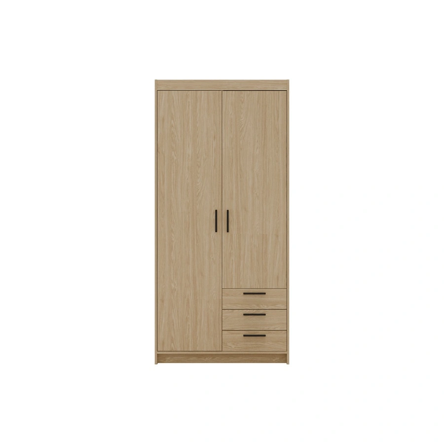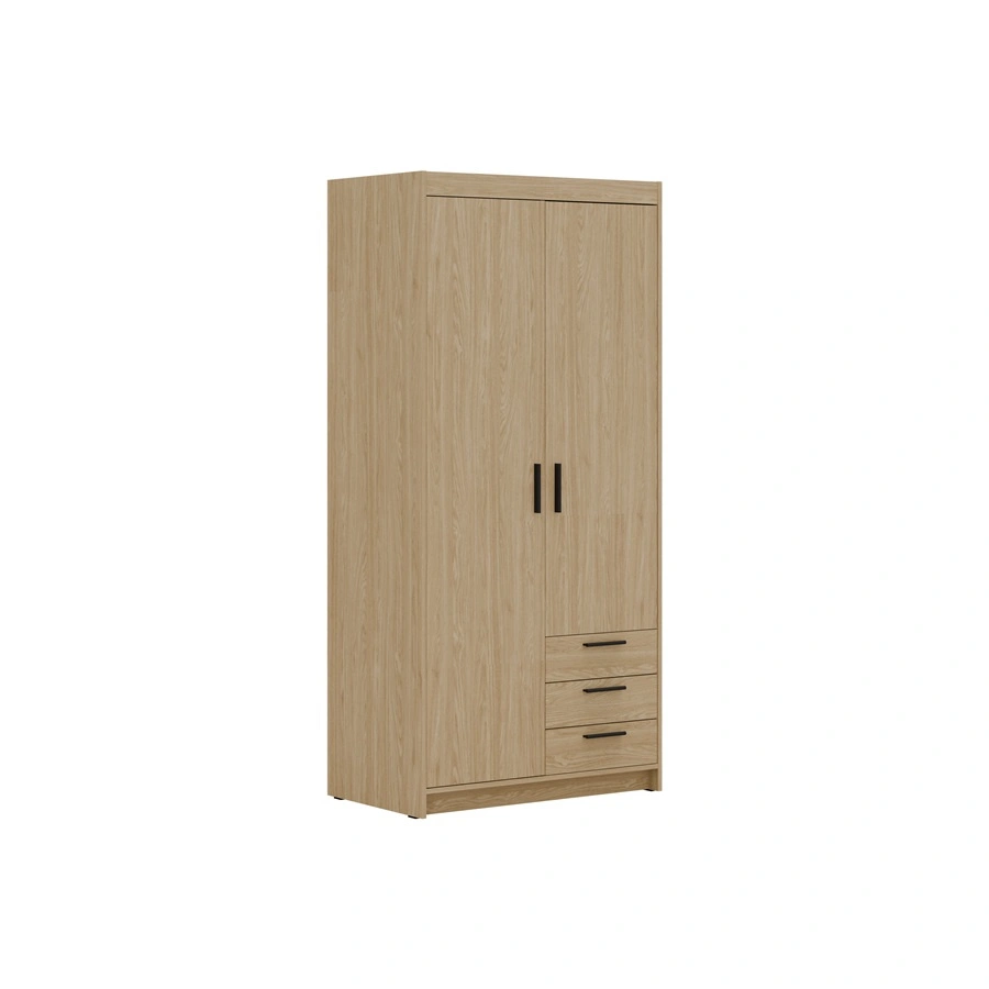 Skříň je vyrobena z 2 dveře a 3 zásuvky. Šatník zaručuje pohodlný i bezproblémové použití a životnost celého nábytku po mnoho let používání. Kombinace z přírodního dubu s černými rukojeťmi šatní skříň je úspěšná jako šatní skříň do ložnice, do předsíně nebo do dětského pokoje. Modulární skříně Rene jsou skvělou volbou i pro dětský pokoj. Skvěle se hodí i jako šatní skříň do předsíně.