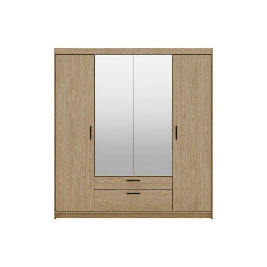 Skříň je vyrobena z 4 dveře a 2 zásuvky. Šatník zaručuje pohodlné a bezproblémové použití a trvanlivost celého nábytku po mnoho let používání. Kombinace z přírodního dubu s černými rukojeťmi šatní skříň je úspěšná jako šatní skříň do ložnice, do předsíně nebo do dětského pokoje. Zrcadlové skříně Rene jsou skvělou volbou i do dětského pokoje. Skvěle se hodí i jako šatní skříň do předsíně.