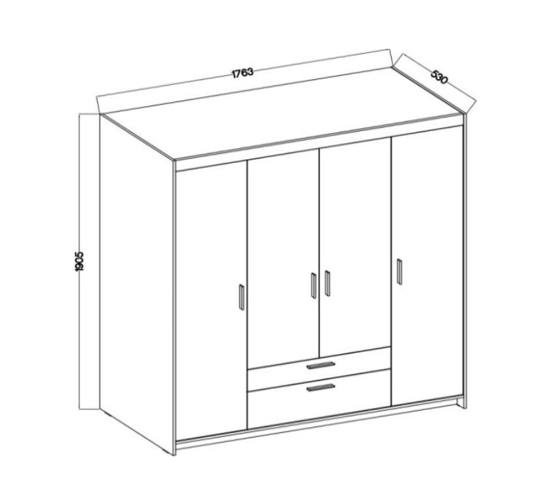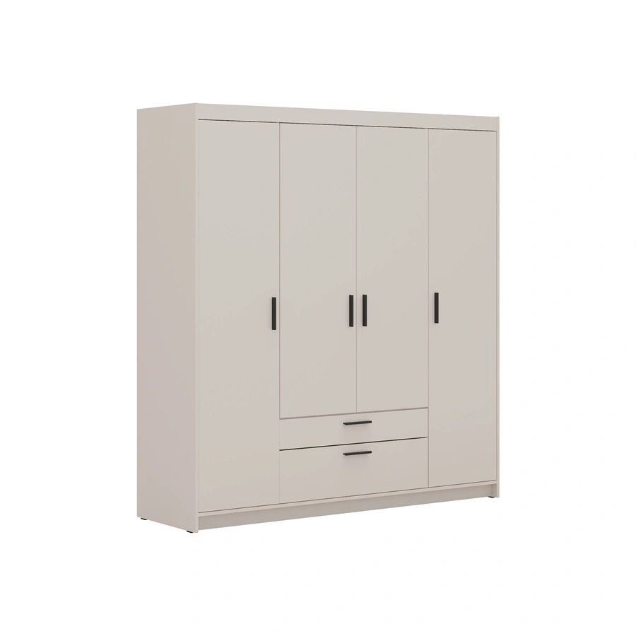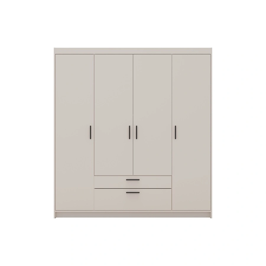 Skříň je vyrobena z 4 dveře a 2 zásuvky. Šatník zaručuje pohodlný i bezproblémové použití a životnost celého nábytku po mnoho let používání. Kombinace pískově béžová s černými rukojeťmi šatní skříň je úspěšná jako šatní skříň do ložnice, do předsíně nebo do dětského pokoje. Modulární skříně Rene jsou skvělou volbou i pro dětský pokoj. Skvěle se hodí i jako šatní skříň do předsíně.