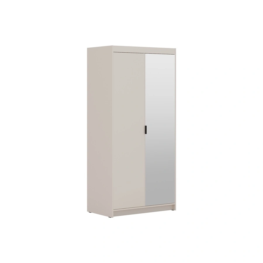 Skříň je vyrobena z 2 výklopné dveře. Šatník zaručuje pohodlný i bezproblémové použití a životnost celého nábytku po mnoho let používání. Kombinace pískově béžová s černými rukojeťmi šatní skříň je úspěšná jako šatní skříň do ložnice, do předsíně nebo do dětského pokoje. Zrcadlové skříně Rene jsou skvělou volbou i do dětského pokoje. Skvěle se hodí i jako šatní skříň do předsíně.