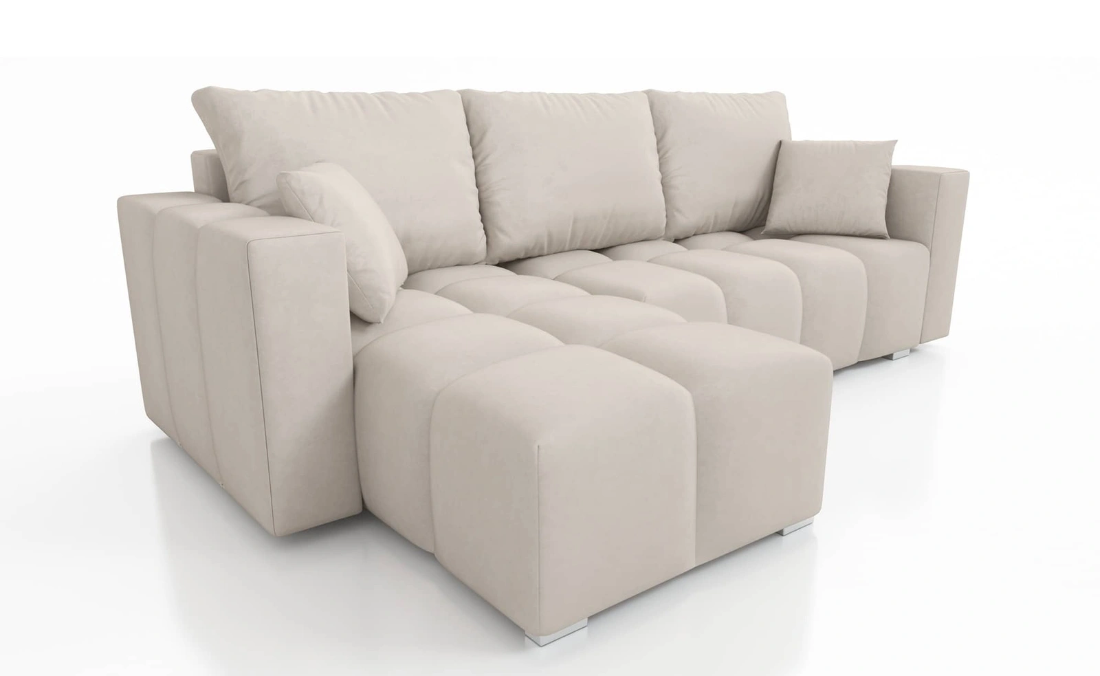 Rohová pohovka Linco s funkcí spaní světle béžová univerzální rohová pohovka s moderním designem z měkké plyšové látky