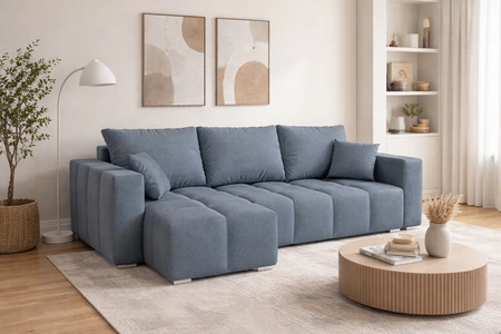 Díky svým rozměrům a široké funkčnosti je rohová pohovka s funkcí spaní ideální jako rohová pohovka do obývacího pokoje nebo jako rozkládací rohová pohovka do pokoje pro hosty. Rohová pohovka s funkcí spaní je také skvělou alternativou k posteli v pokoji pokoj pro mladé. Šířka rohu 249 cm, výška 88 cm a hloubka 148 cm. Spací plocha rohové jednotky je 140x208 cm. Výška sedadla nábytku je 40 cm, a výška opěradla je 48 cm. Vlnité pružiny a polyuretanová pěna T28 je materiál, z něhož je vyrobeno sedadlo rohu. Soft opěrné polštáře zajistí vysokou úroveň pohodlí při každodenním odpočinku, což oceníte vy i vaši hosté, kteří se na tuto jedinečnou rohovou sedačku posadí.