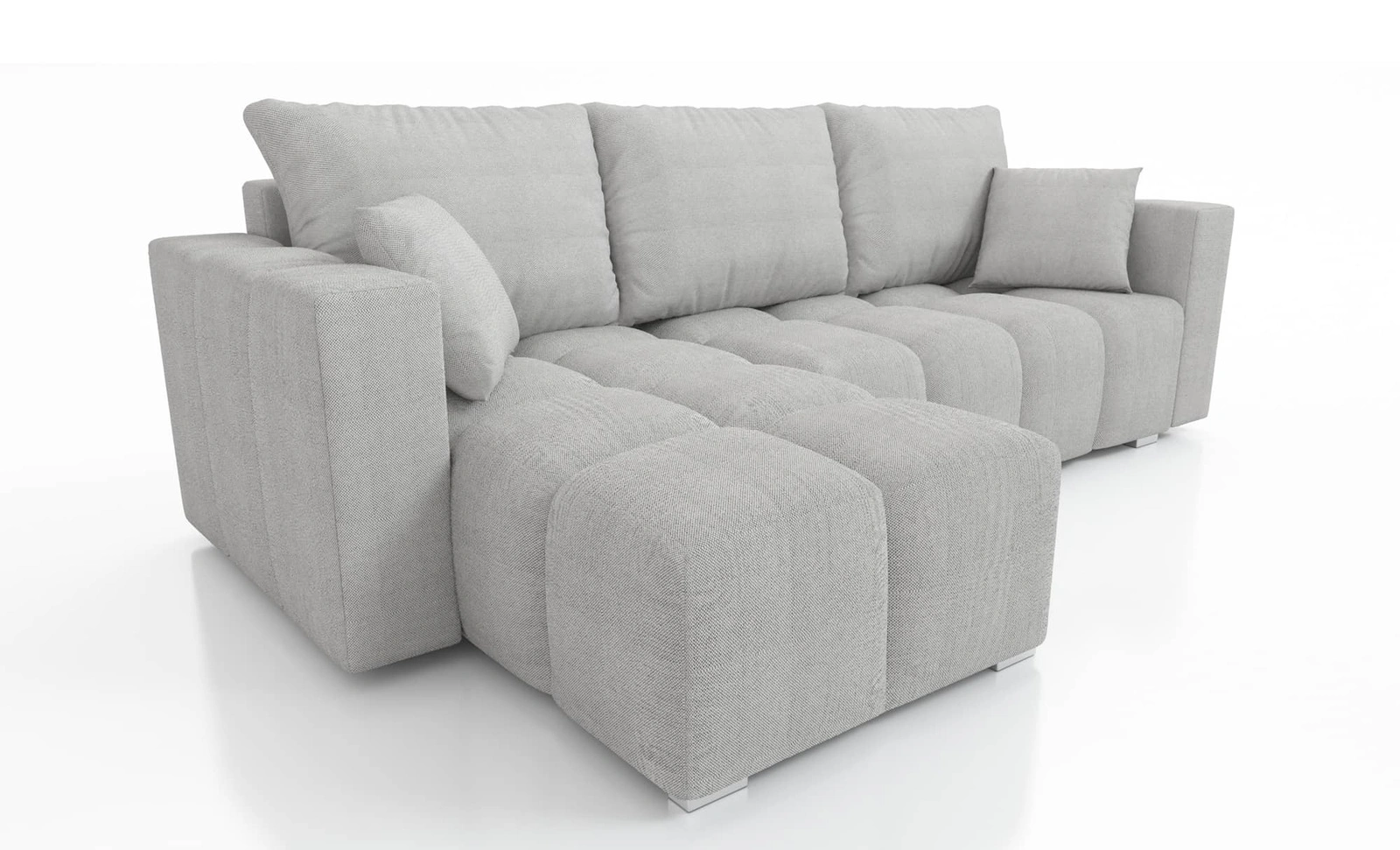 Kuriózní tkanina je tkanina se zajímavým povrchem, který vytváří zajímavý vzor. Cvočky, které vypadají jako vroubkované body, dodávají jedinečný charakter a zároveň poskytují mimořádně měkký a hřejivý pocit. Materiál vykazuje vysokou pevnost v tahu a vlastnosti hydrofobní zabraňuje vstřebávání tekutin. Díky tomu bude skládací roh Linco vypadat esteticky a elegantně po dlouhou dobu. Tkanina je také snadno se udržuje v čistotě. Rohová sedací souprava s funkcí každodenního spaní je vyrobena z vysoce kvalitních materiálů, které jsou odolné vůči vnějším vlivům, jako je čalounění nábytku a různé druhy nárazů.