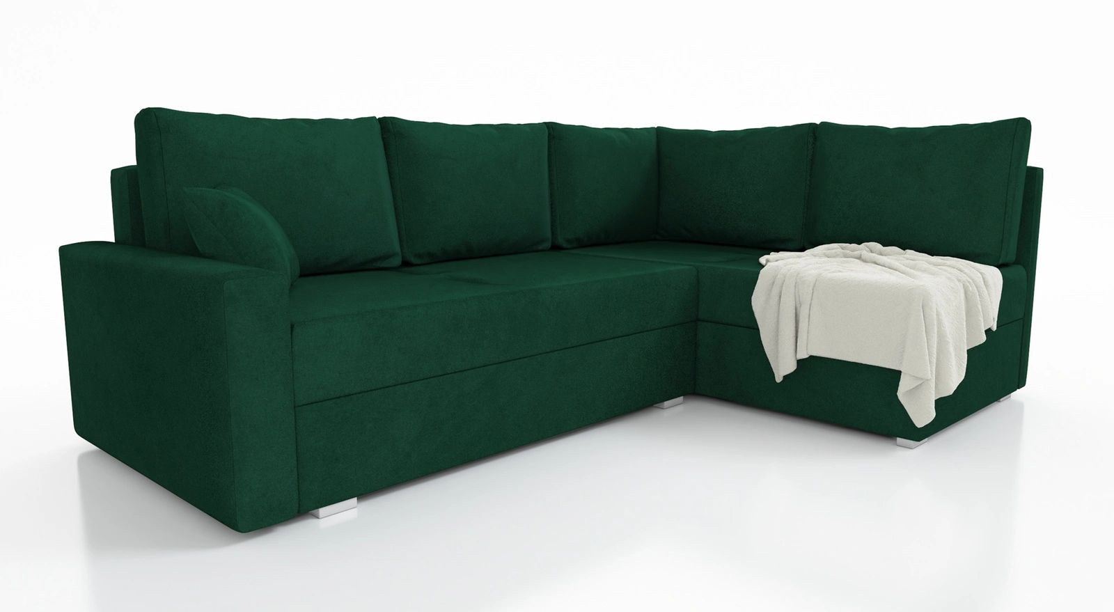 Rohová sedací souprava s funkcí spaní Nofi láhev zelená pravá strana moderní design jednoduchý a stylový korpus, který se hodí do každého interiéru