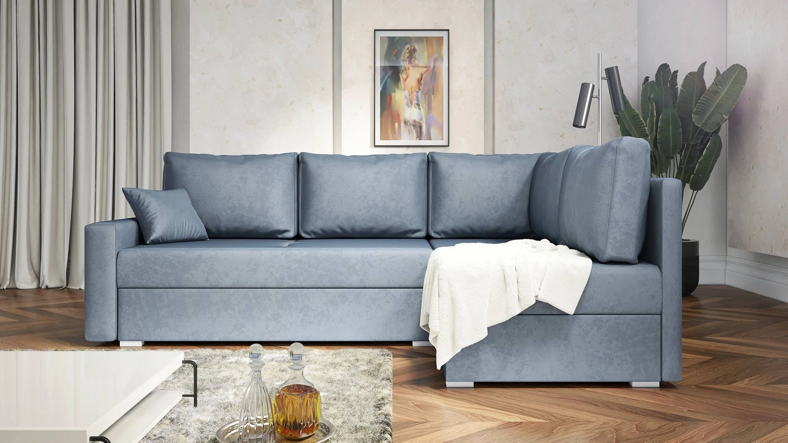 Způsob rozkládání rohové jednotky je praktický a snadno se používá automatický stroj typu DL, která se vyznačuje dlouhou životností. Rozdělení celé plochy spaní je velmi snadné a nevyžaduje velkou sílu. Nábytek je vybaven s nízkými plastovými nožičkami. Kolekce rohových sedacích souprav do obývacího pokoje Nofi dokonale zapadne do každého interiéru ve vašem oblíbeném stylu.