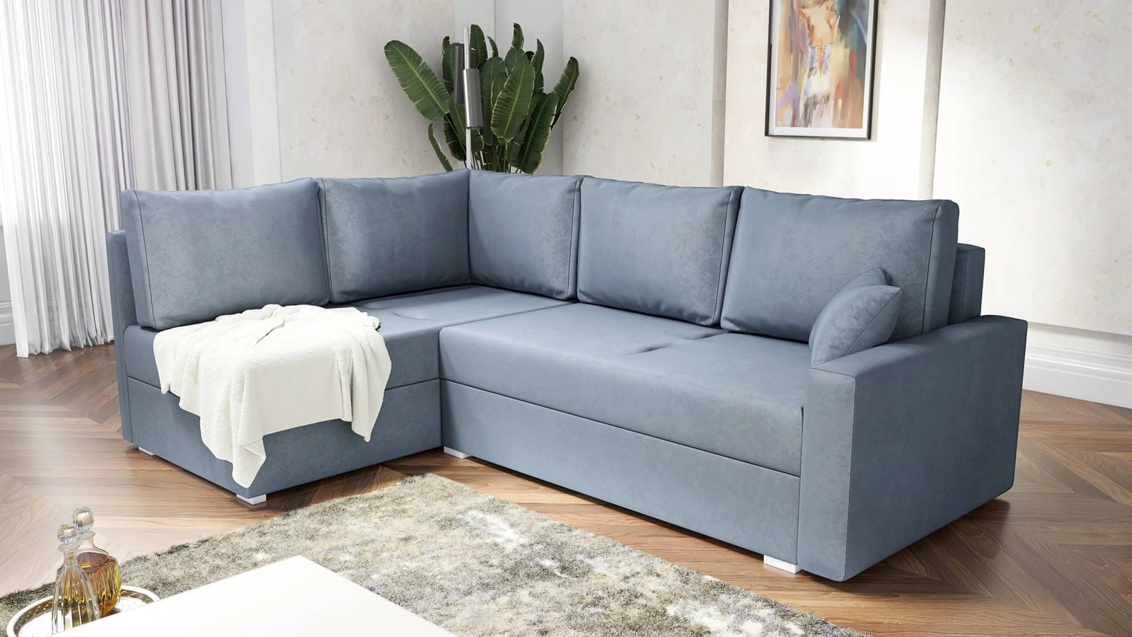 Tkanina Paros se vyznačuje vysokou odolností proti vyblednutí, což je ideální pro velmi slunné interiéry. Pohodlné čalounění s plyšovým povrchem s jemným chlupem dává nábytku jemný, stínovaný efekt, která se mění s každým dotykem. Tkanina je také snadno se udržuje v čistotě. Další výhodou tkaniny Paros je vysoká odolnost proti roztřepení a oděru. Díky tomu bude Nofi skládací roh vypadat esteticky a elegantně po dlouhou dobu. Rohová sedací souprava s funkcí každodenního spaní je vyrobena z vysoce kvalitních materiálů, které jsou odolné vůči vnějším vlivům, jako je čalounění nábytku a různé druhy nárazů.