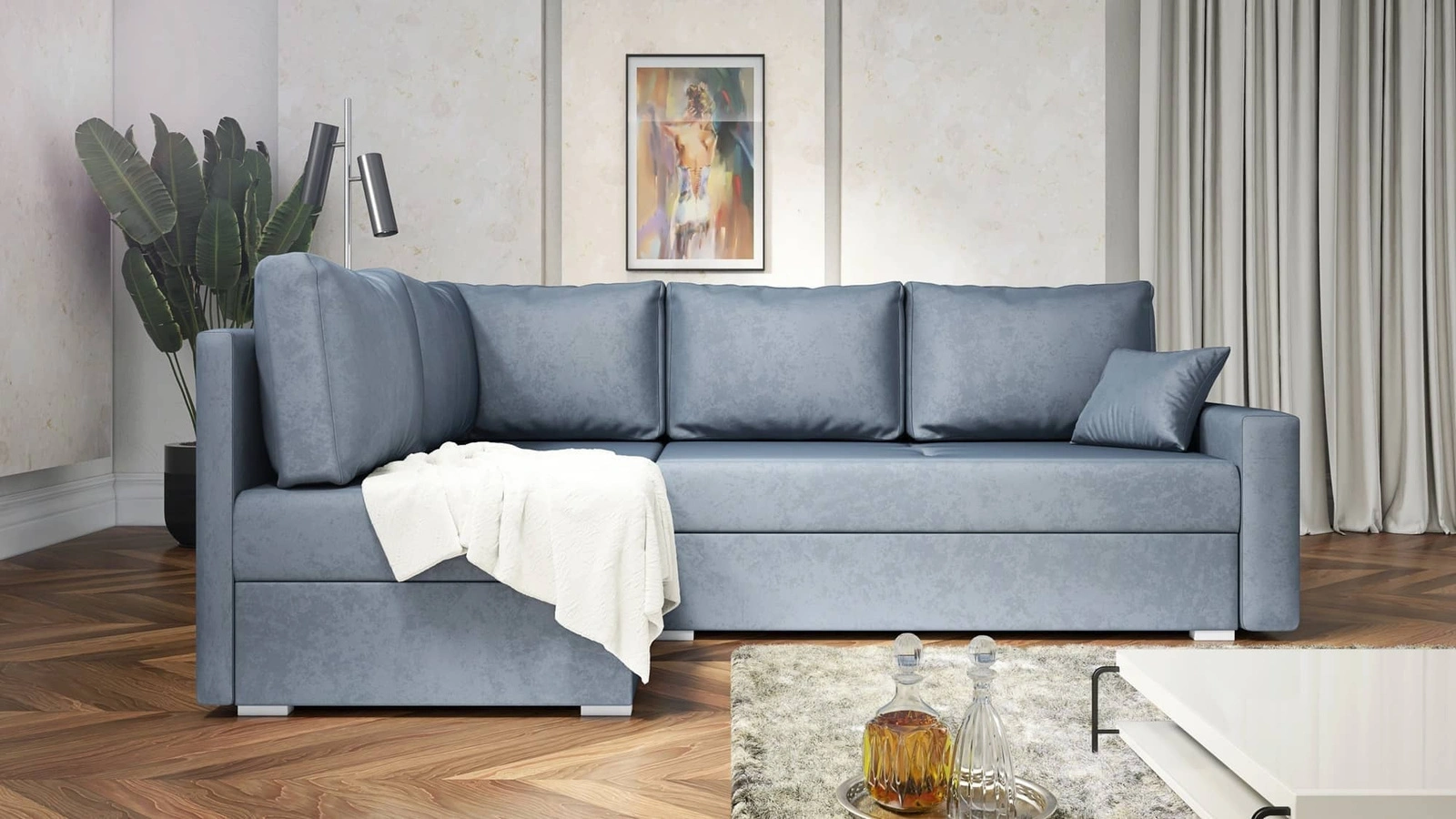 Způsob rozkládání rohové jednotky je praktický a snadno se používá automatický stroj typu DL, která se vyznačuje dlouhou životností. Rozdělení celé plochy spaní je velmi snadné a nevyžaduje velkou sílu. Nábytek je vybaven s nízkými plastovými nožičkami. Kolekce rohových sedacích souprav do obývacího pokoje Nofi dokonale zapadne do každého interiéru ve vašem oblíbeném stylu.