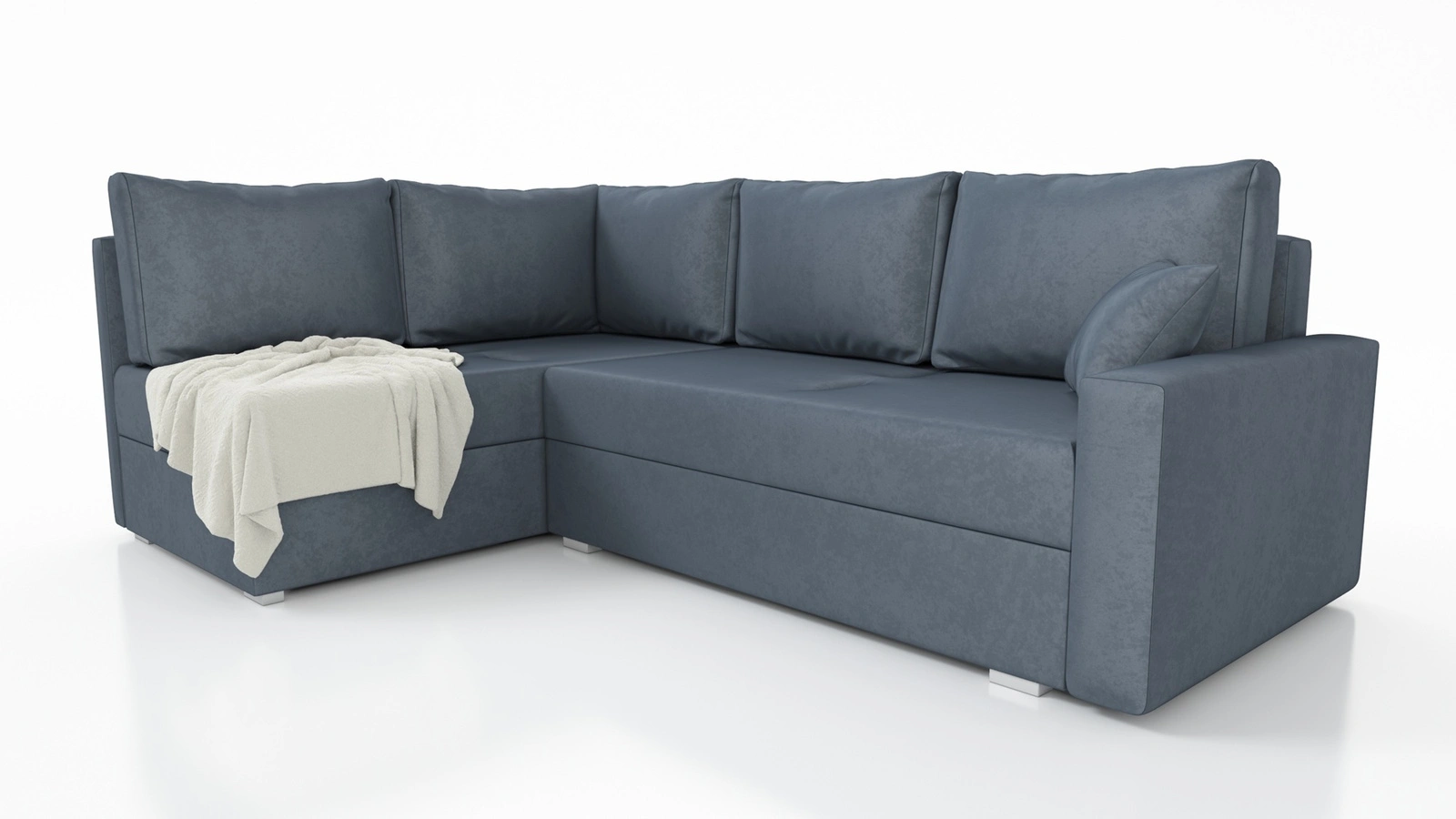 Díky svým rozměrům a široké funkčnosti je rohová pohovka s funkcí spaní ideální jako rohová pohovka do obývacího pokoje nebo jako rozkládací rohová pohovka do pokoje pro hosty. Rohová pohovka s funkcí spaní je také skvělou alternativou k posteli v pokoji pokoj pro mladé. Šířka rohu 228 cm, výška 84 cm a hloubka 145 cm. Spací plocha rohové jednotky je 137x201 cm. Výška sedadla nábytku je 41 cm, a výška opěradla je 48 cm. Vlnité pružiny a polyuretanová pěna T28 je materiál, z něhož je vyrobeno sedadlo rohu. Soft opěrné polštáře zajistí vysokou úroveň pohodlí při každodenním odpočinku, což oceníte vy i vaši hosté, kteří se na tuto jedinečnou rohovou sedačku posadí.