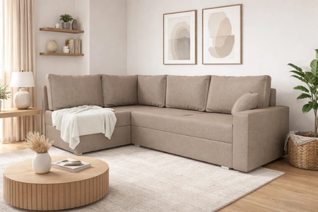 Rohová sedací souprava s funkcí spaní Nofi tmavě béžová levá moderní design jednoduchý a stylový korpus, který se hodí do každého interiéru
