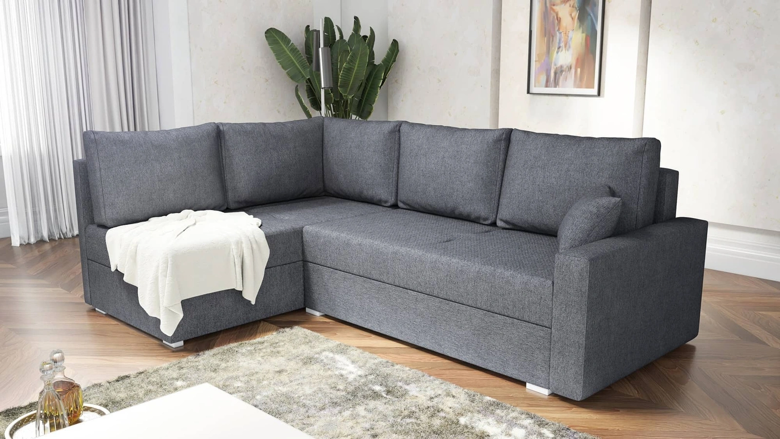 Způsob rozkládání rohové jednotky je praktický a snadno se používá automatický stroj typu DL, která se vyznačuje dlouhou životností. Rozdělení celé plochy spaní je velmi snadné a nevyžaduje velkou sílu. Nábytek je vybaven s nízkými plastovými nožičkami. Kolekce rohových sedacích souprav do obývacího pokoje Nofi dokonale zapadne do každého interiéru ve vašem oblíbeném stylu.