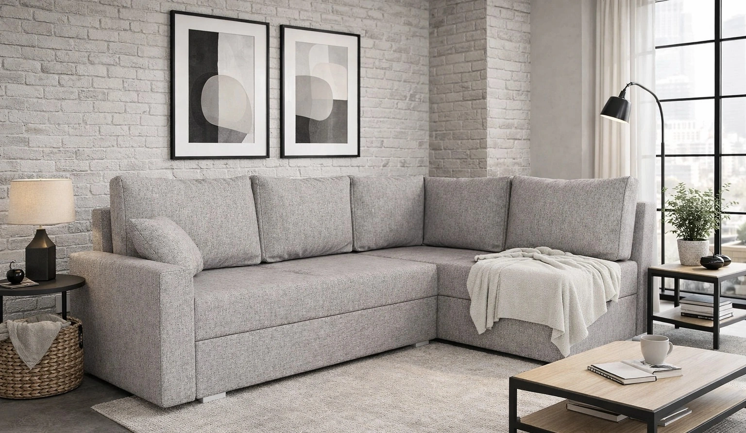 Podrobnosti o moderní rohové pohovce s funkcí spaní Nofi