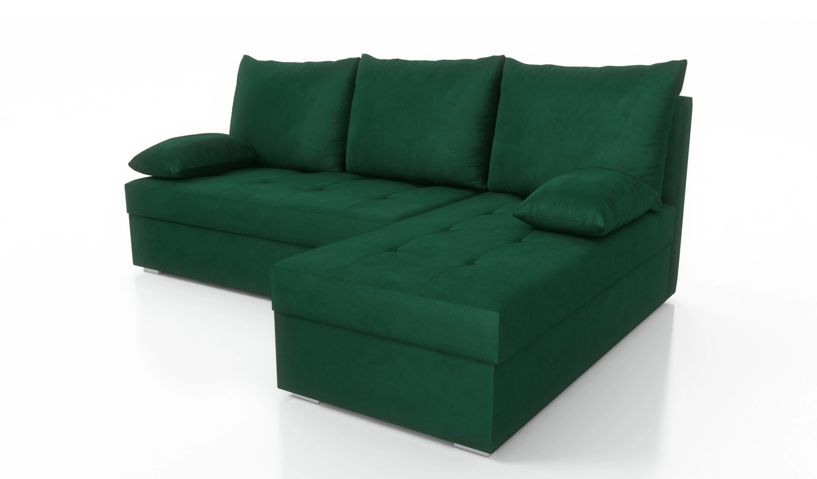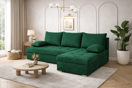 Rohová pohovka Fasti s funkcí spaní v lahvově zelené barvě Univerzální rohová pohovka s kontejnerem na lůžkoviny záruka pohodlí