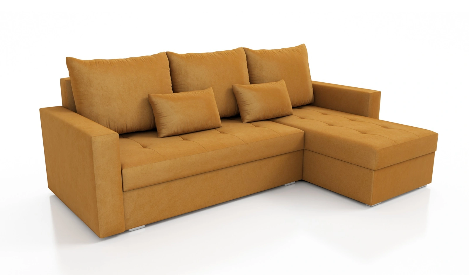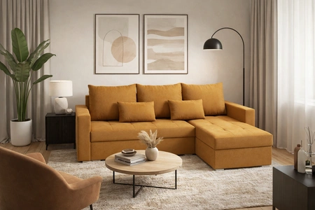 Rohová pohovka Fasti Bis v hořčicové barvě je ideálním řešením obývacího pokoje, které se hodí do každého interiéru.