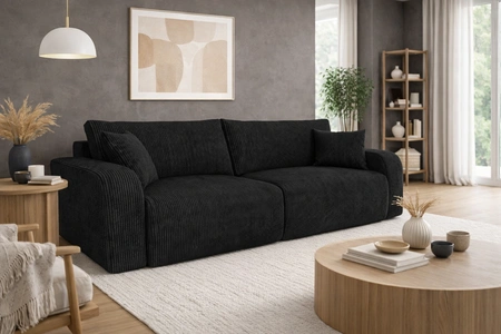 Rozkládací pohovka Fiesta černá funkční pohovka do obývacího pokoje s úložným prostorem na lůžkoviny elegantní design manšestrová tkanina