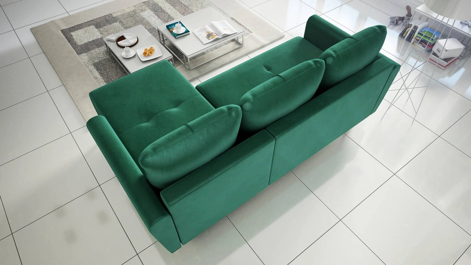 Rohová pohovka Felicie v lahvově zelené barvě je stylový kousek, který se skvěle hodí do jakéhokoli interiéru vaší domácnosti.