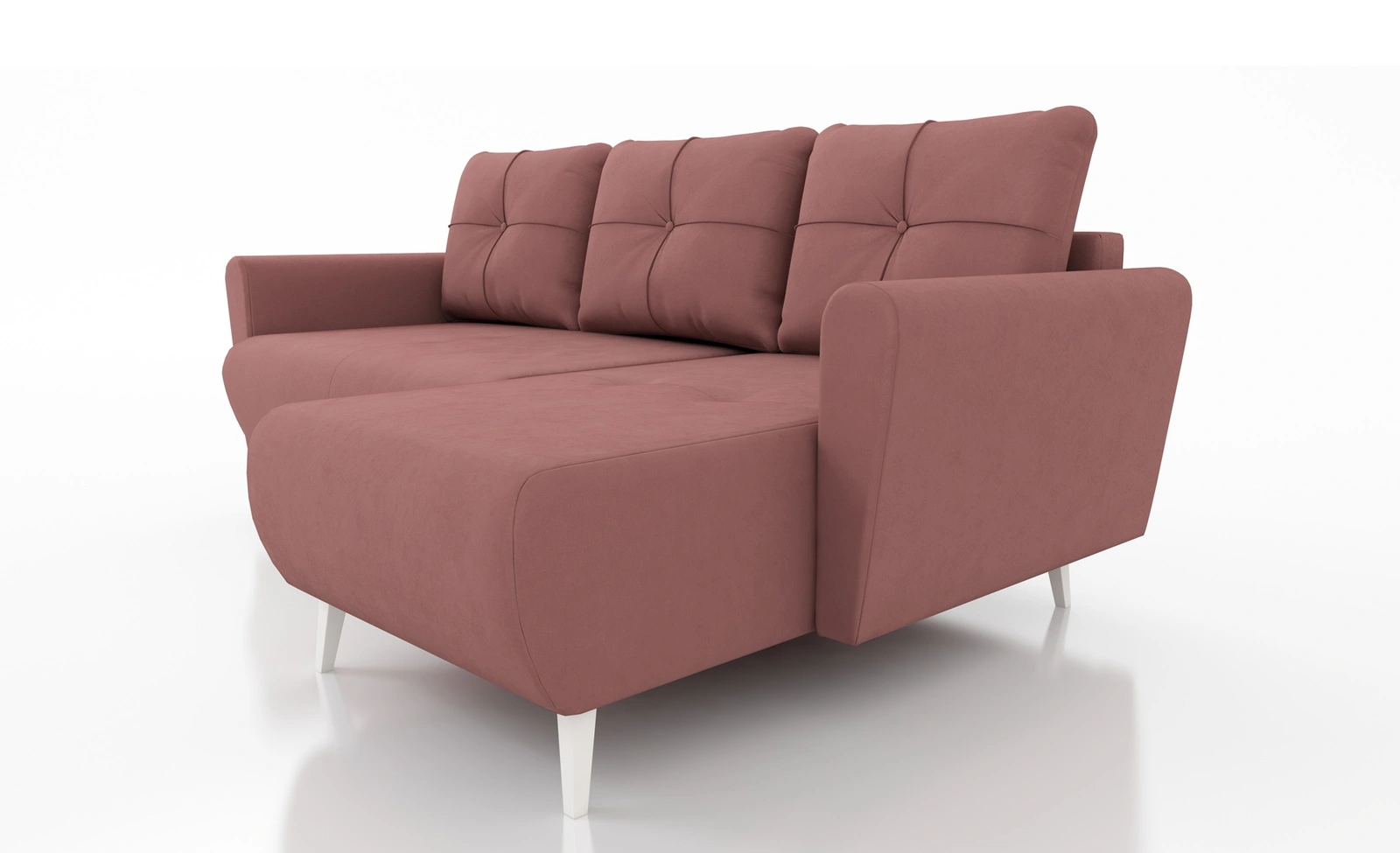 Díky svým optimálním rozměrům a široké funkčnosti je rohová pohovka s funkcí spaní ideální jako rohová pohovka do obývacího pokoje nebo jako rozkládací rohová pohovka do pokoje teenagera. Šířka rohu 228 cm, maximální výška 90 cm a hloubka 155 cm. Spací plocha rohové jednotky je 122x200 cm. Výška sedadla nábytku je 43 cm a maximální výška opěradla je 50 cm. Pružiny Bonell a polyuretanová pěna T30 je materiál, z něhož je vyrobeno sedadlo rohu. Zádová opěrka s volným opěradlem polštáře zaručuje pohodlný odpočinek po dlouhém dni, který oceníte vy, vaši blízcí i hosté, kteří si na tuto výjimečnou rohovou sedačku sednou.